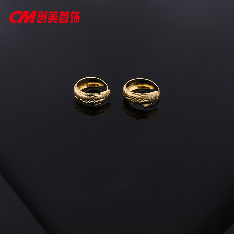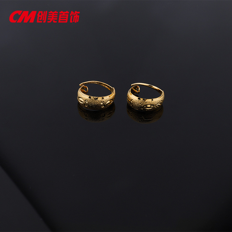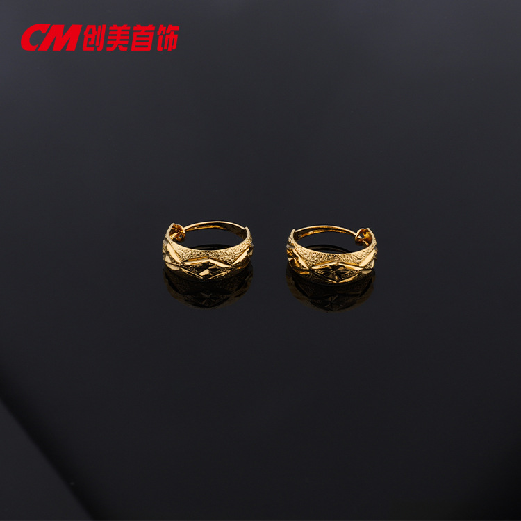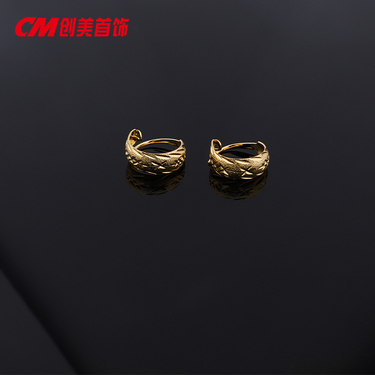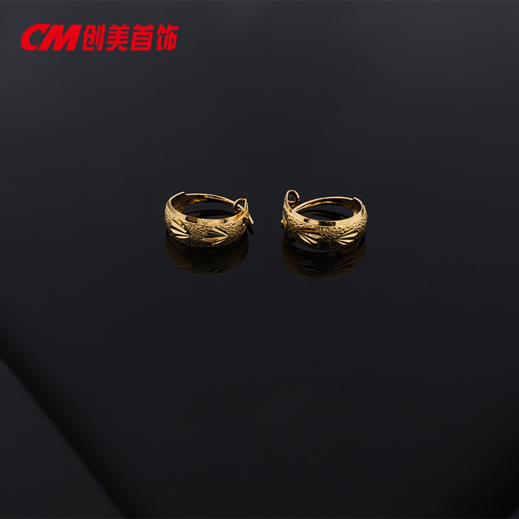 Chuangmei Jewelry 24K gold-plated round matte striped plain ear loops and ear buckles, cold and high-end Japanese and Korean style earrings for women
