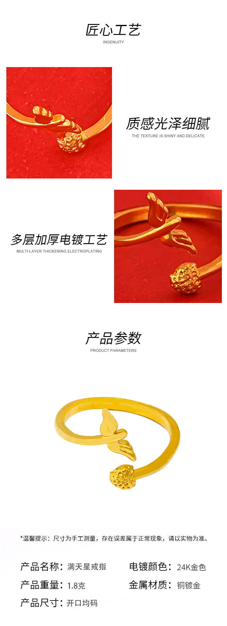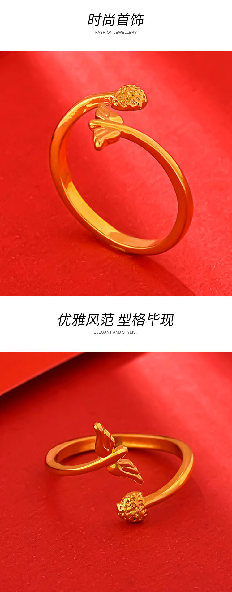 Chuangmei Jewelry's 24K gold-plated wing ring is a unique and retro design ring for women, a wedding ring