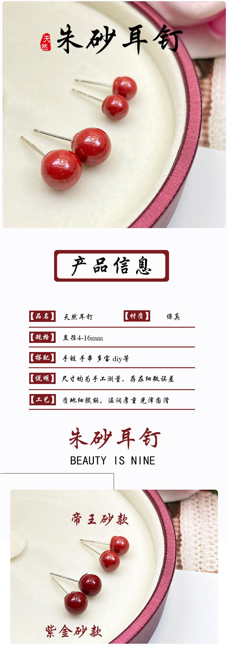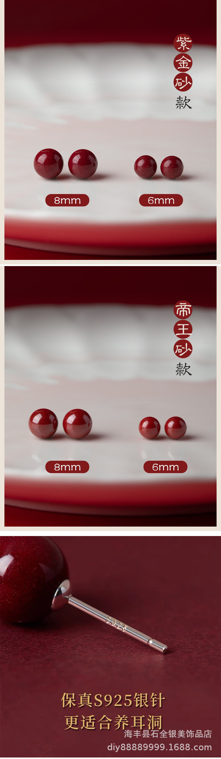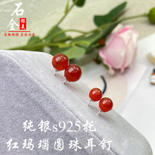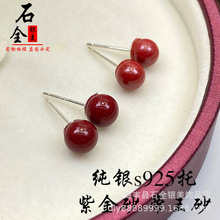 Cinnabar and purple clay ear studs, imperial clay fashionable men's and women's style ear studs factory direct sales live stream 925 Silver needle
