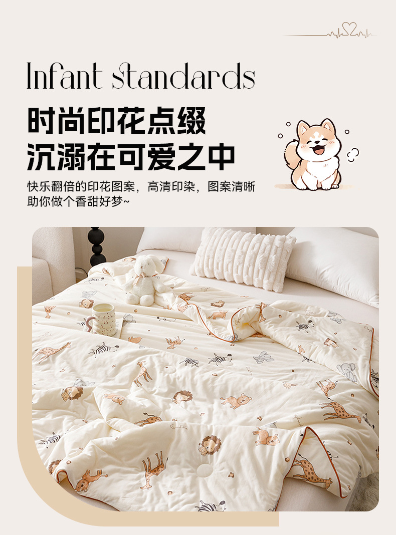 Class A mother and baby grade summer cooling quilt, washable quilt, summer children's cartoon printed single thin air-conditioned quilt for kindergartens