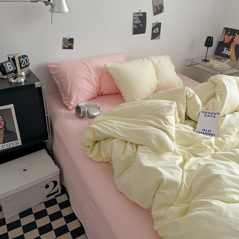 Class A super soft washed cotton four-piece set, ins style bedding, solid color bed sheets, bed covers, quilt covers, dormitory three-piece set ~