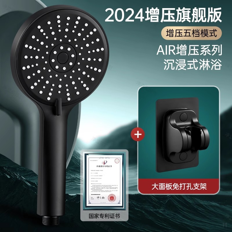 【 Large Panel Set 2】 Black five-speed pressurized showerhead + no-drilling stand
