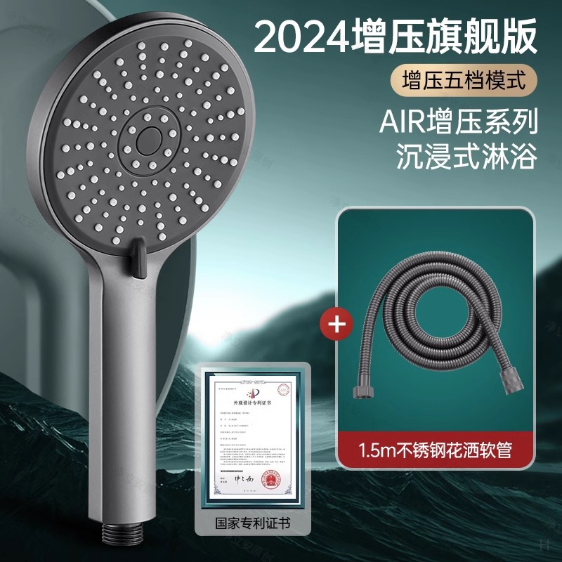 【 Large Panel Set 1】 Silver five-speed pressurized showerhead + 1.5-meter hose