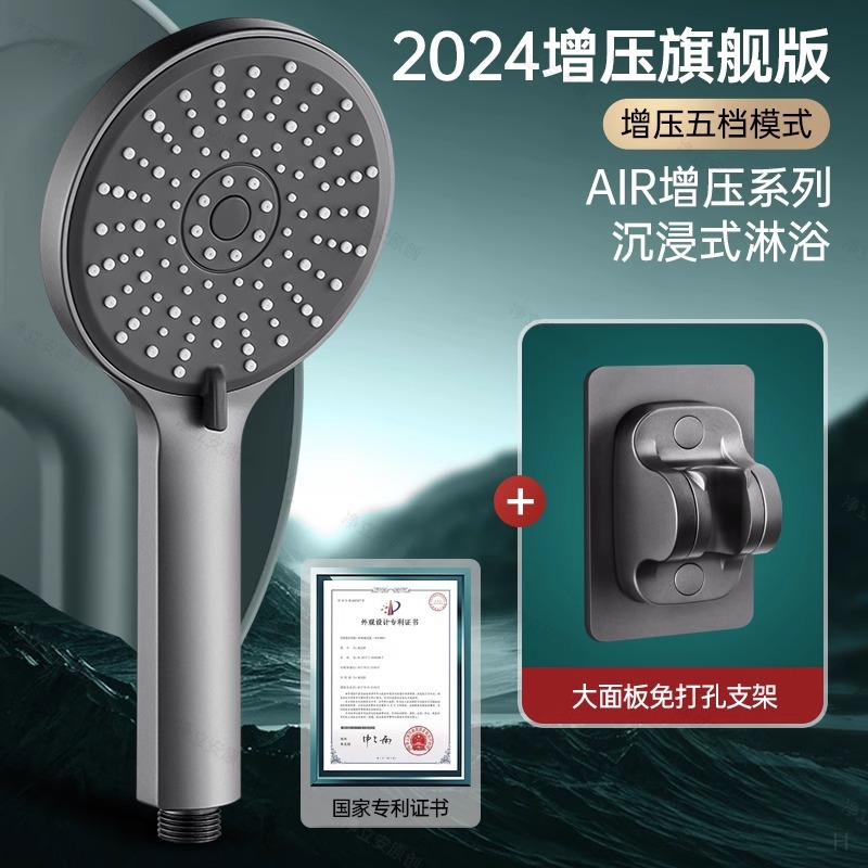 【 Large Panel Set 2】 Gun Gray five-speed pressurized showerhead + no-drilling stand