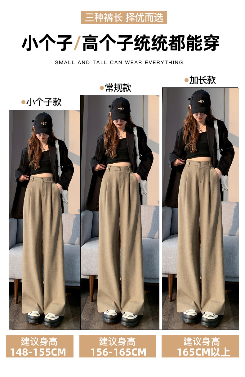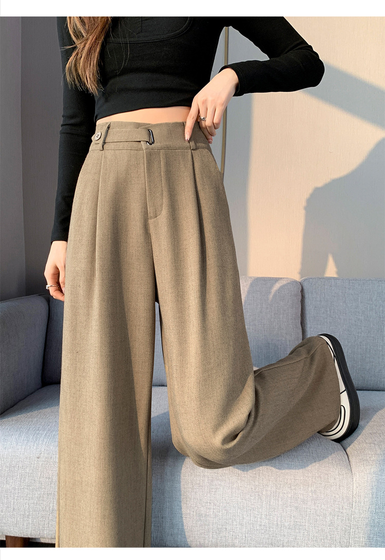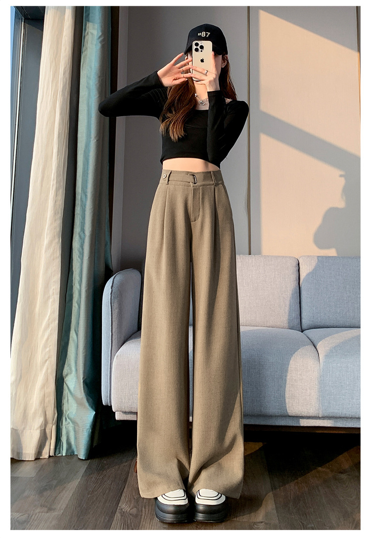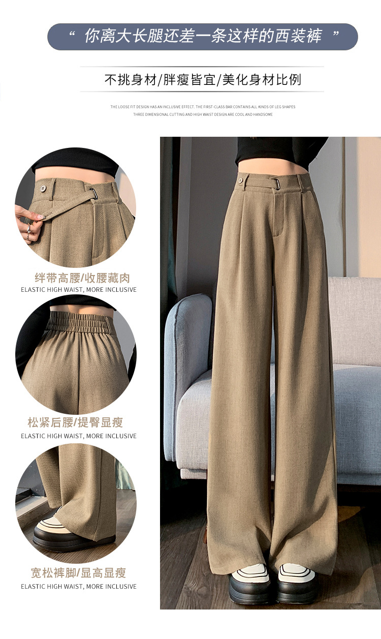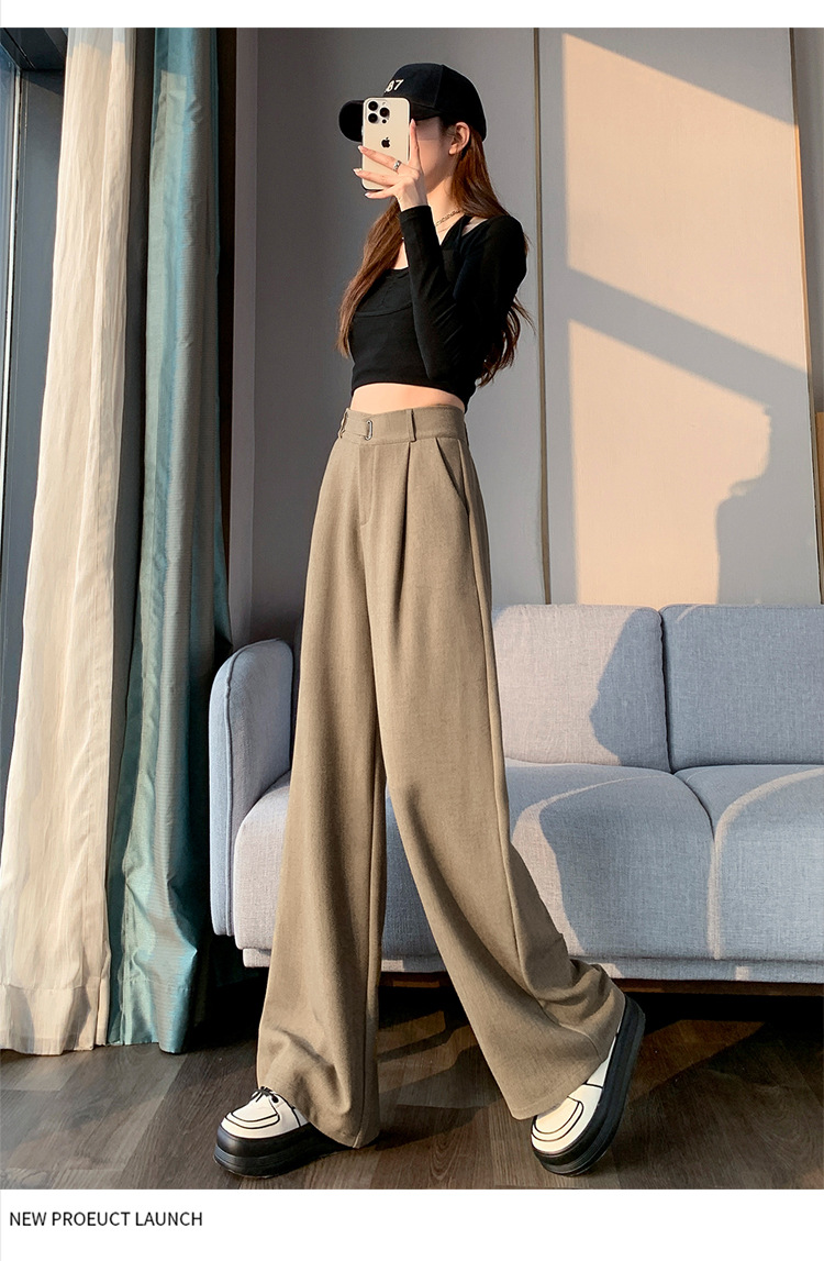 Coffee-colored high-end suit pants for women's autumn and winter 2024 new high-waisted narrow straight-leg wide-leg pants with a sense of drape