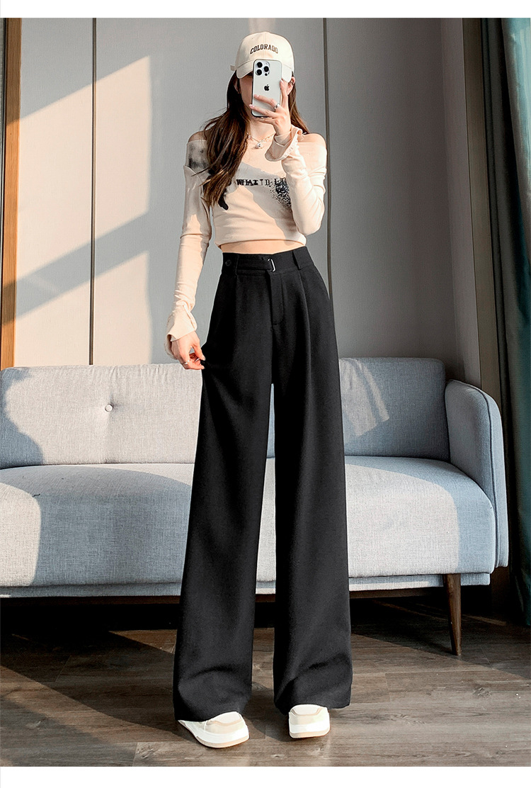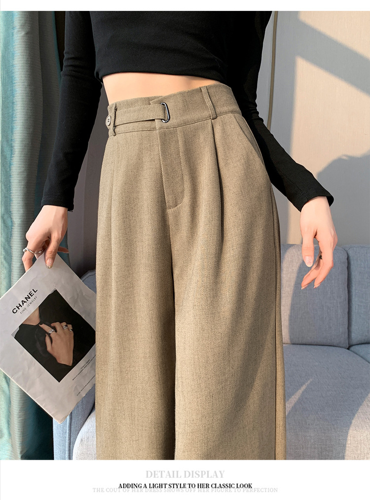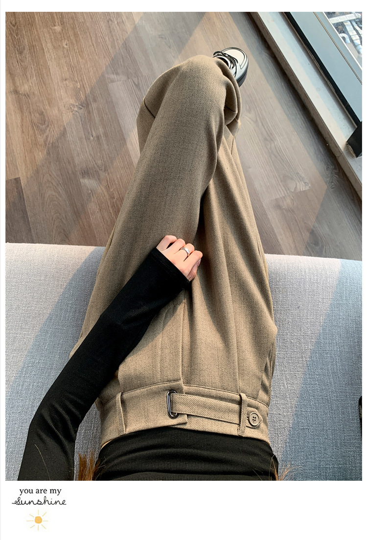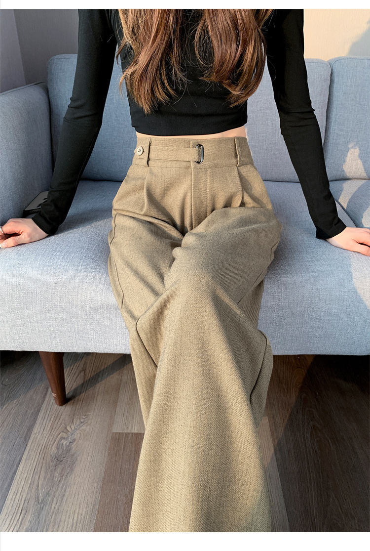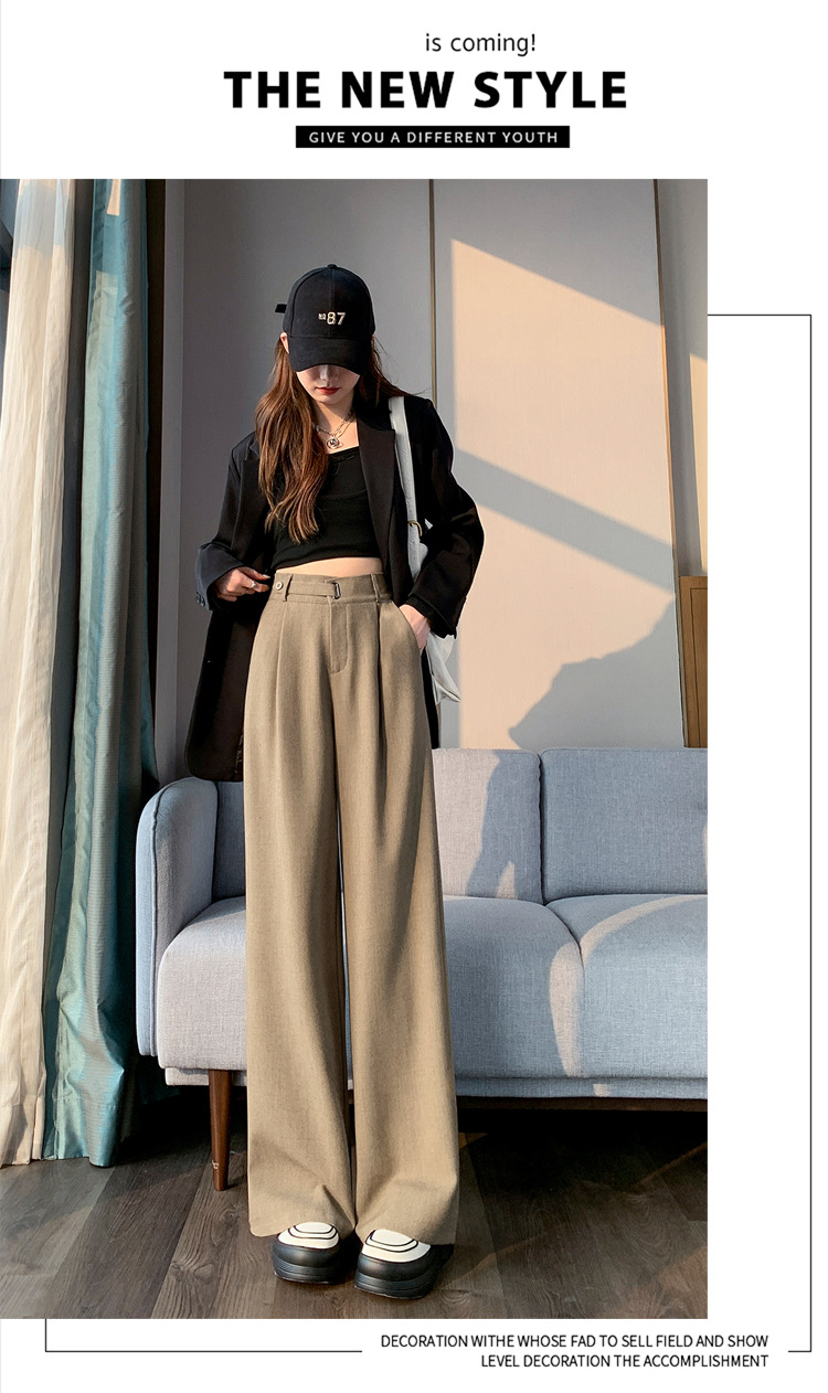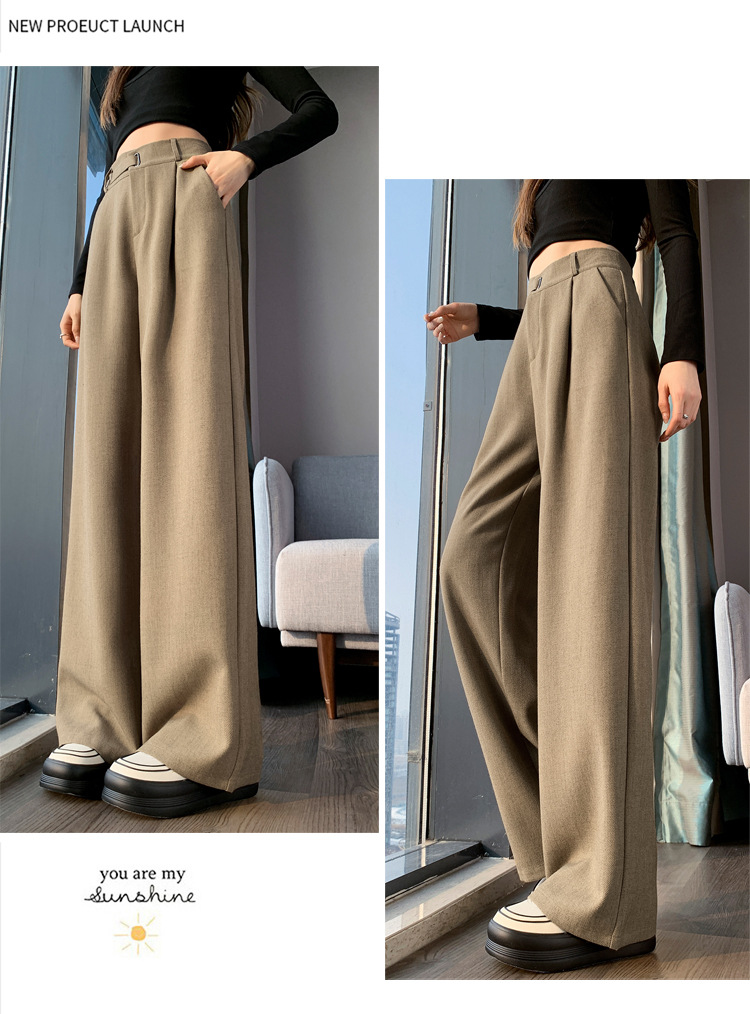 Coffee-colored high-end suit pants for women's autumn and winter 2024 new high-waisted narrow straight-leg wide-leg pants with a sense of drape
