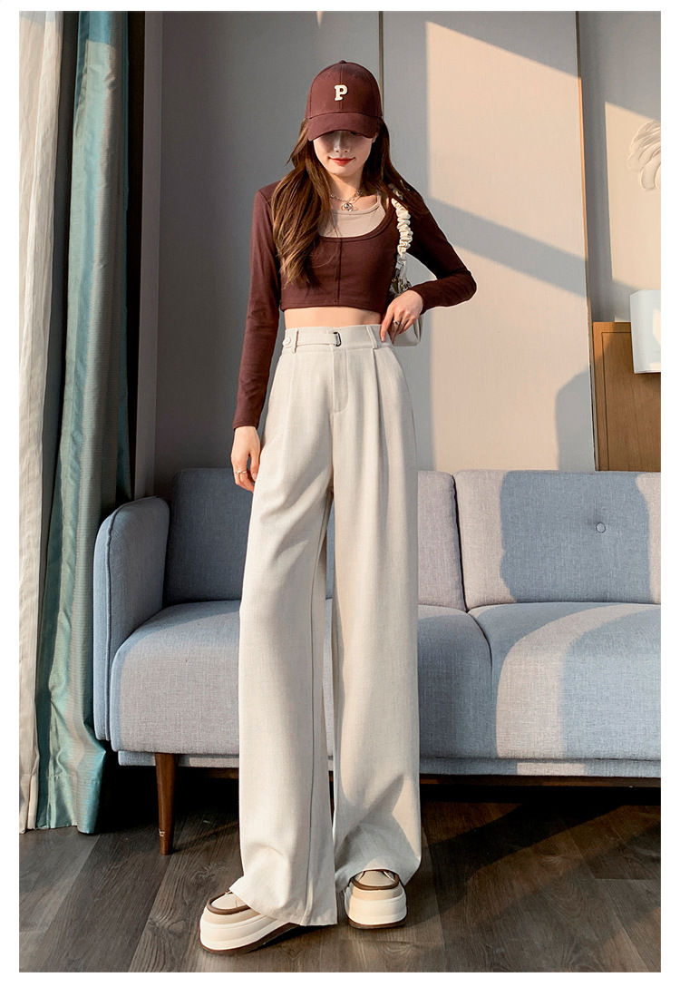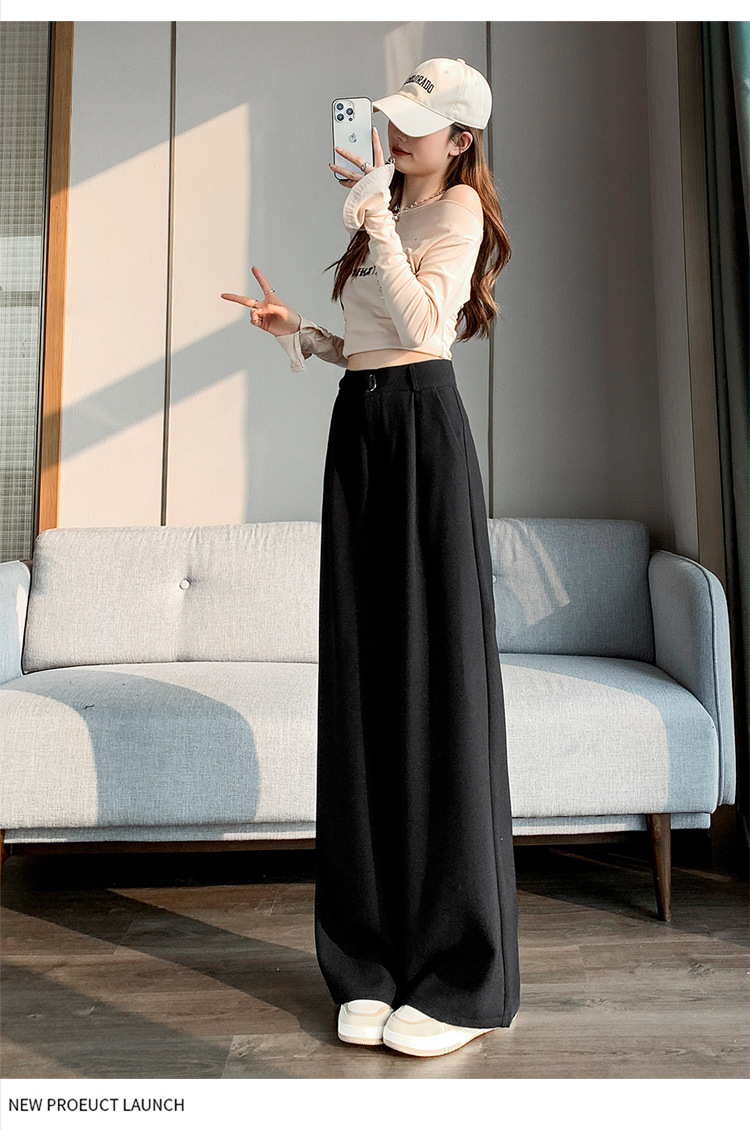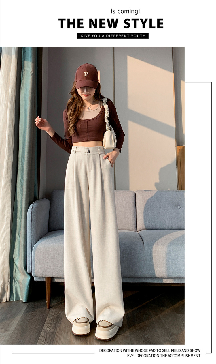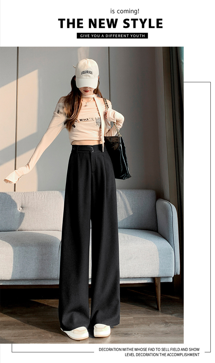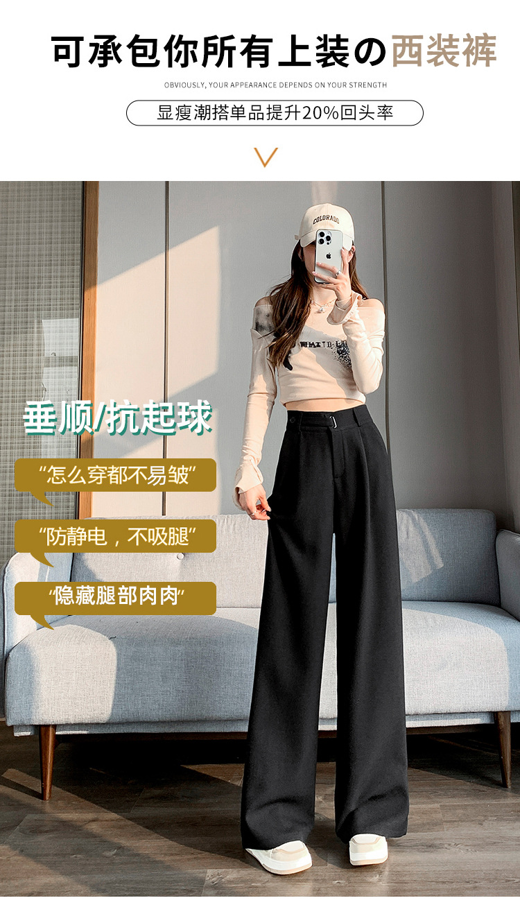 Coffee-colored high-end suit pants for women's autumn and winter 2024 new high-waisted narrow straight-leg wide-leg pants with a sense of drape
