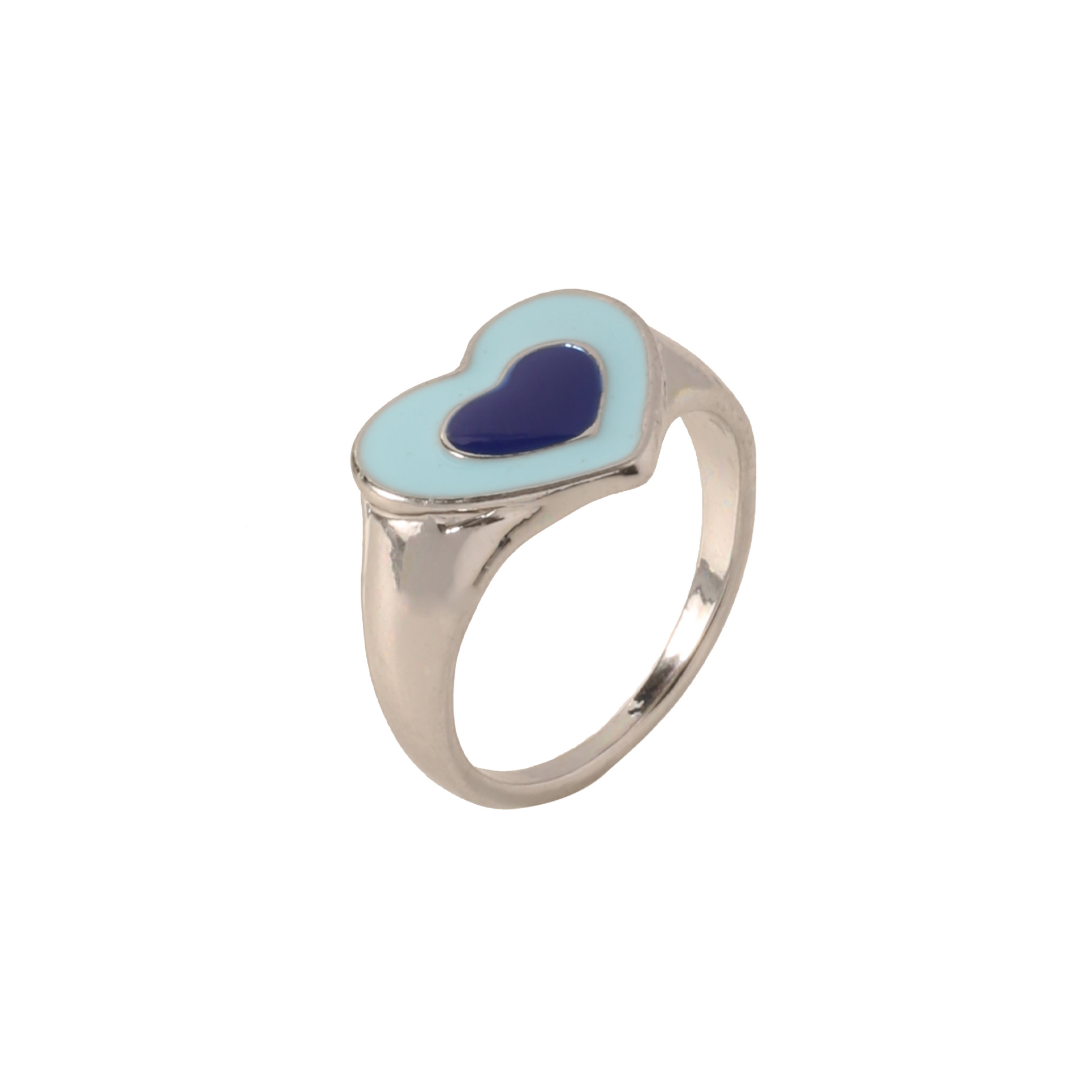 Cold-colored Klein blue resin ring, non-fading, niche geometric ring, heart-shaped smiling face alloy index finger ring set