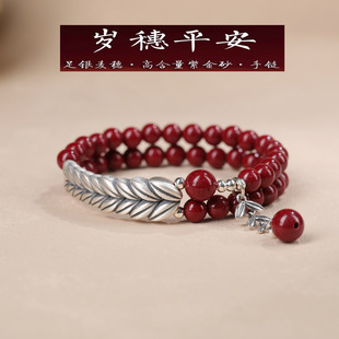 | Genuine pure silver wheat ear double-loop bracelet, cinnabar women's zodiac year year Peace and Good Luck red multi-loop bracelet of the same style |