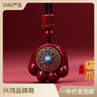 | Thangka cinnabar cat paw pendant for women, purple gold sand inlaid with six-character mantra prayer wheel necklace for women in their zodiac year |