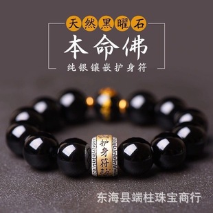| Best-selling Obsidian bracelets for men and women, pure silver zodiac year protection bracelets, Buddhist prayer beads bracelets, high-end genuine products |