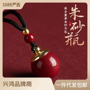 | Cinnabar raw stone powder lucky bag, natural genuine high-purity raw ore Gau box pendant, hollow bottle pendant containing cinnabar |