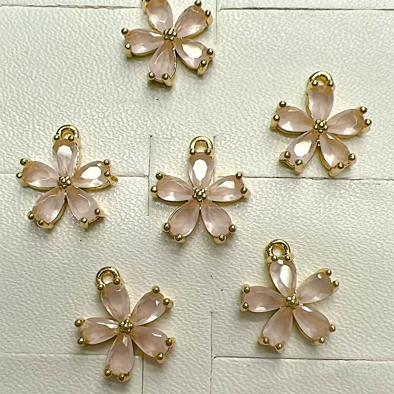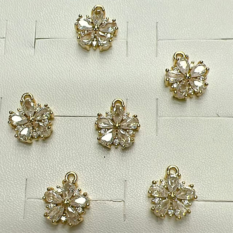 Color-preserving copper micro-inlaid zircon six-petal glass fresh flower pendant diy earrings pendant hairpin accessories