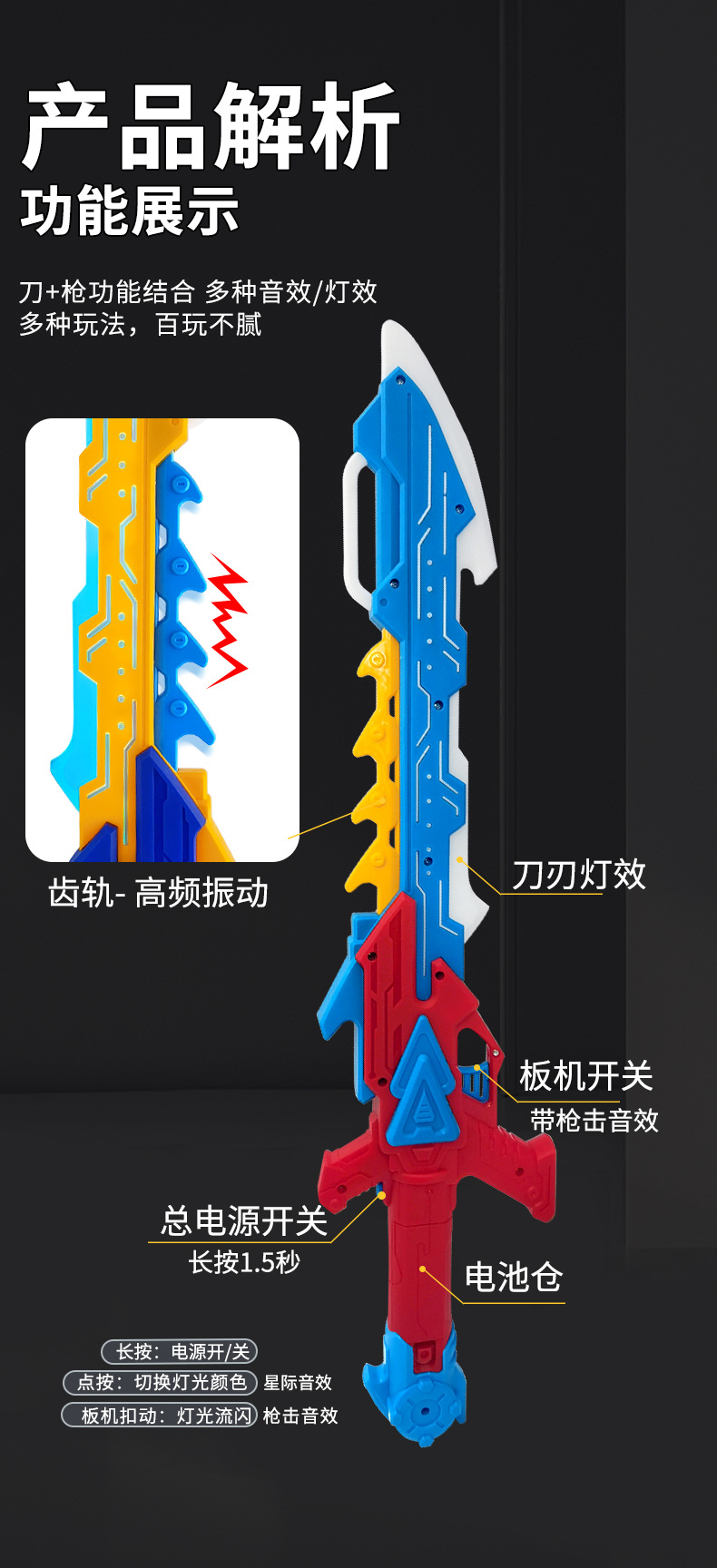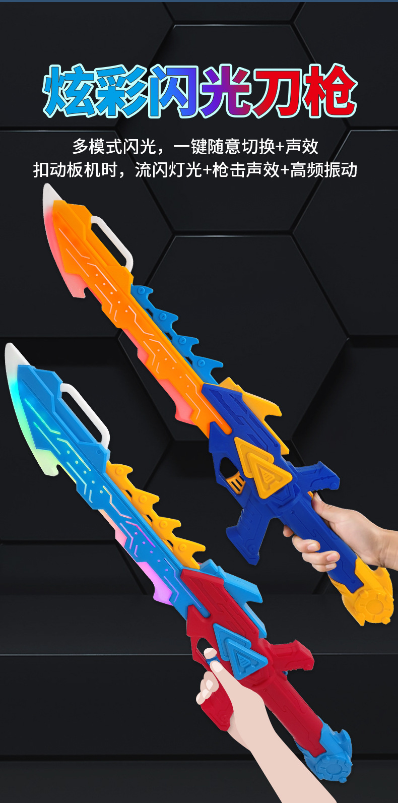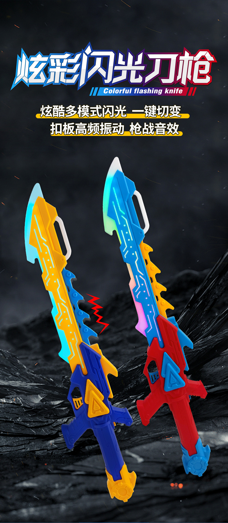Colorful, flashing, vibrating swords, spears, weapons, sounds, seven-color glowing swords, boys' and children's toys, wholesale at street stalls