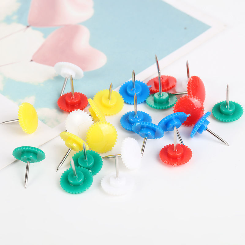 Yellow plastic-coated thumbtacks (80 pieces per set)