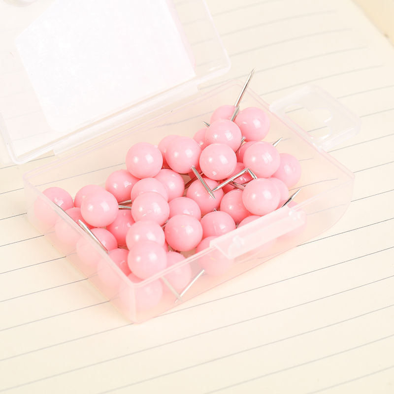 Pink plastic-coated thumbtacks (80 pieces per set)