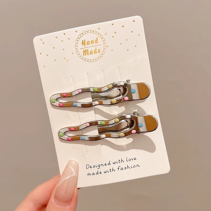 Colorful polka dot metal hair clips, sweet and cool girl's forehead hair fringe clips, duckbill clips, ins style hair clip headwear
