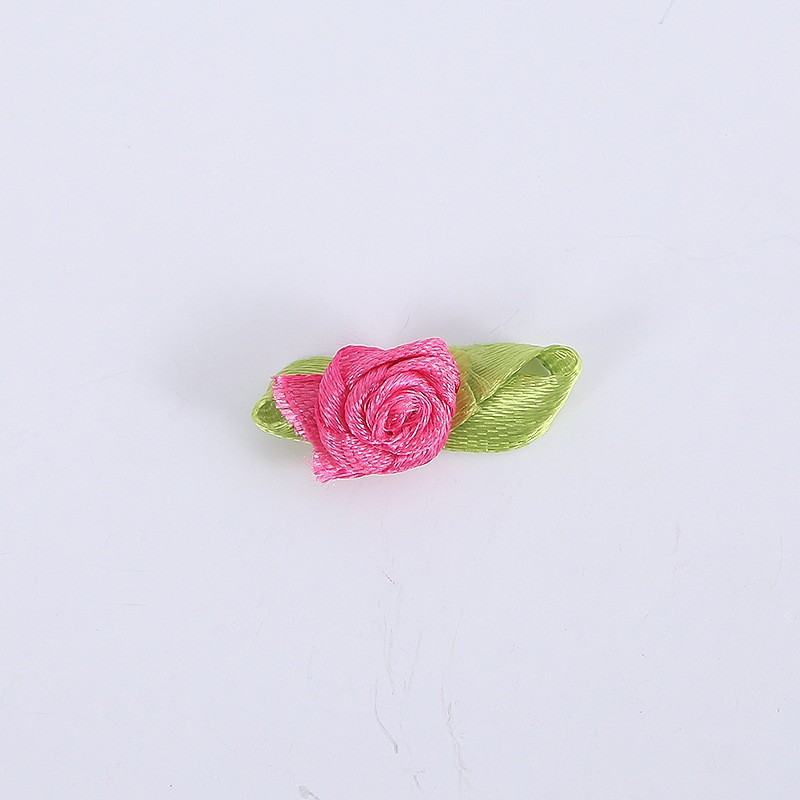 Colorful small rose craft accessories/Ribbon flowers with leaf roses/ribbon flowers 2.5x1.4cm DIY accessories