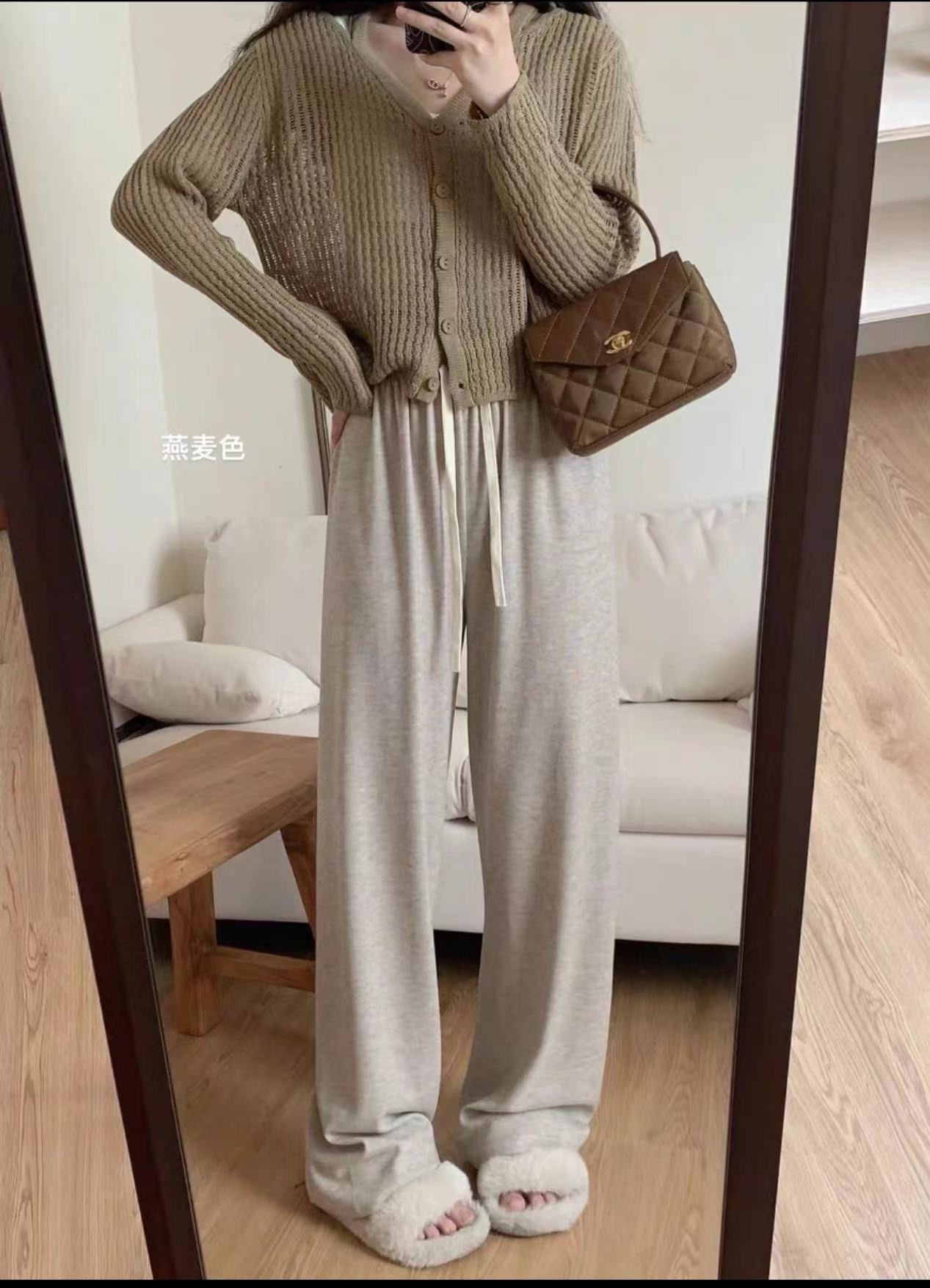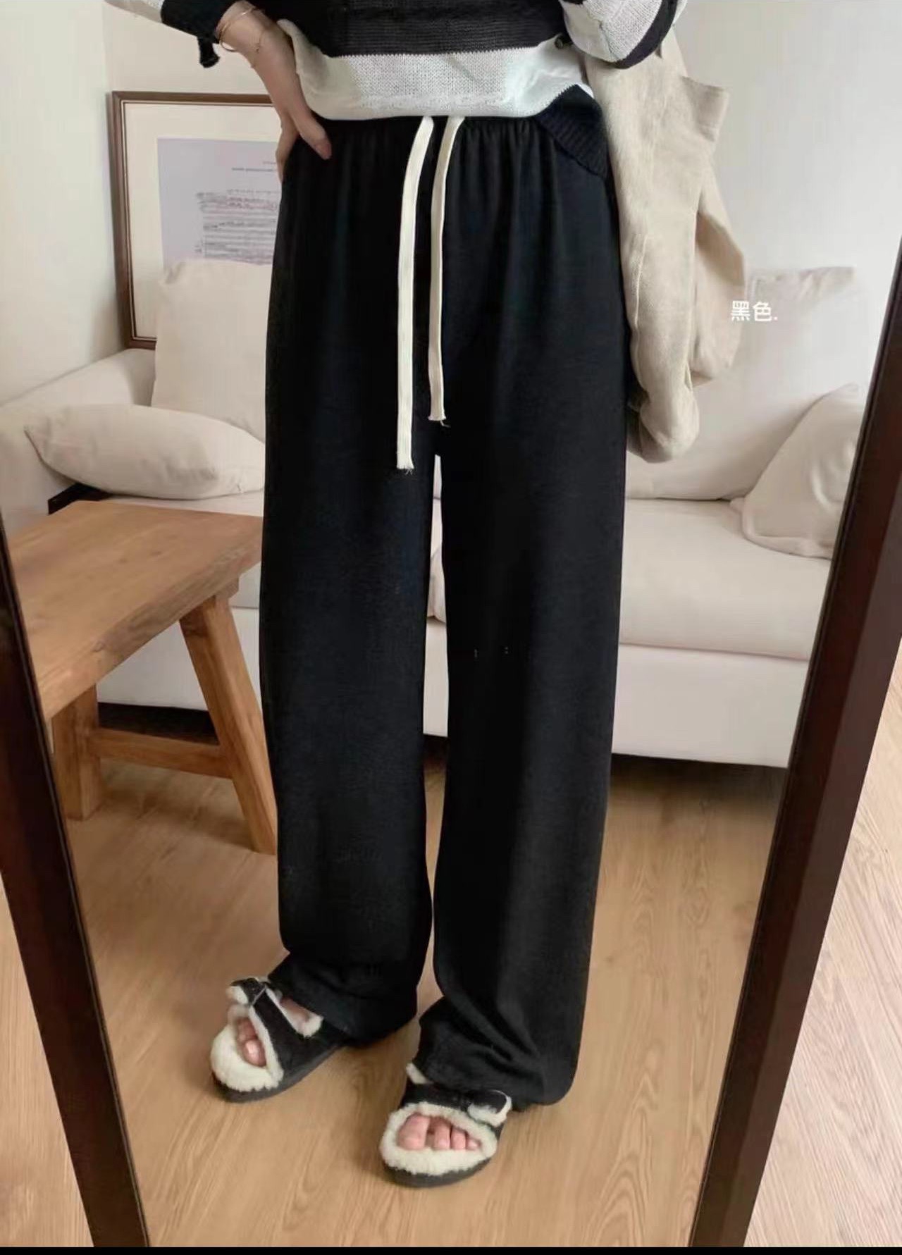 Colorful striped casual straight-leg women's pants, grey glutinous rice pants, new autumn design, fashionable drawstring colorful striped wide-leg pants