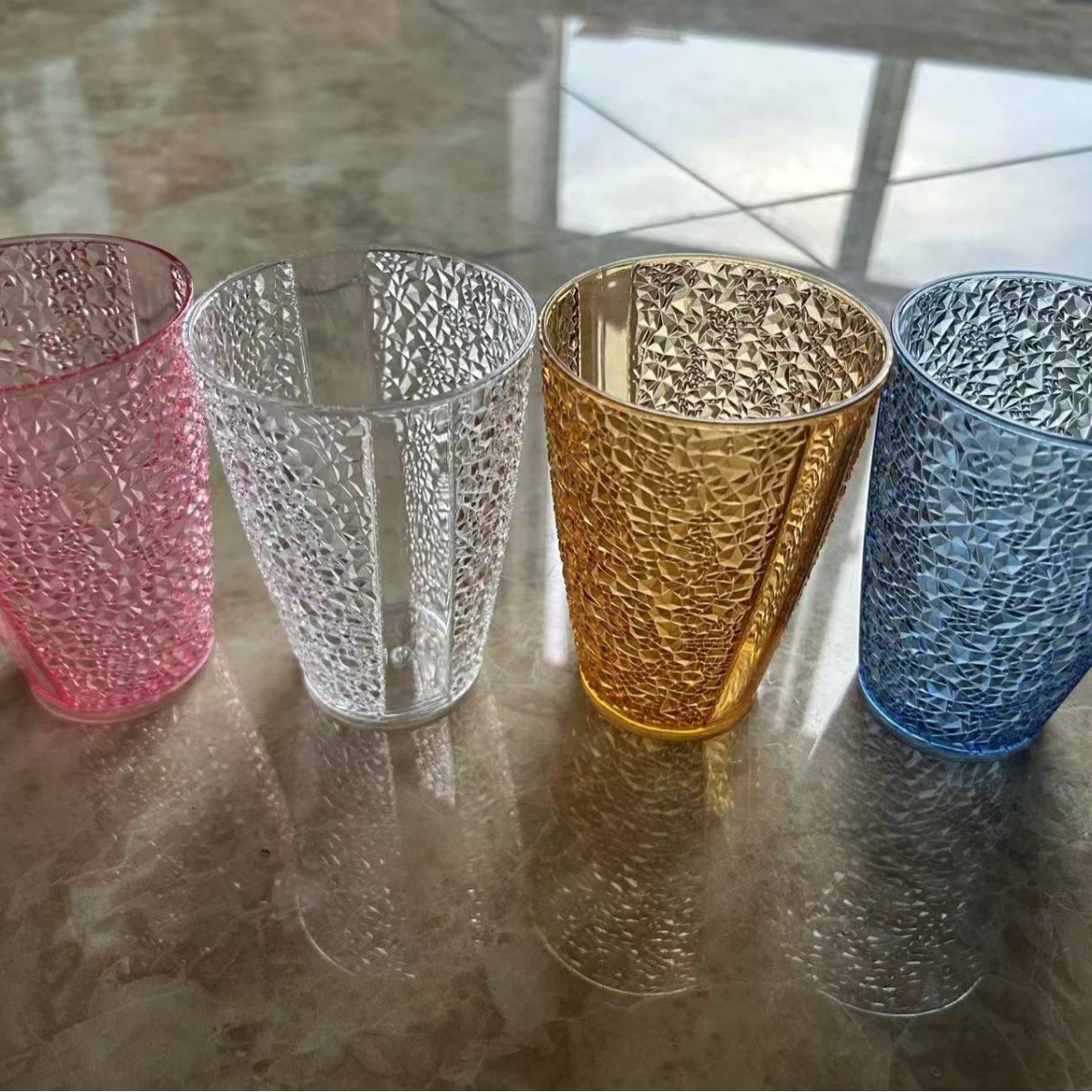 Colorful water pattern beverage cup, brushing cup, rim cup with gold edge, creative cup, foreign trade plastic cup, mixed color rim cup, simple design