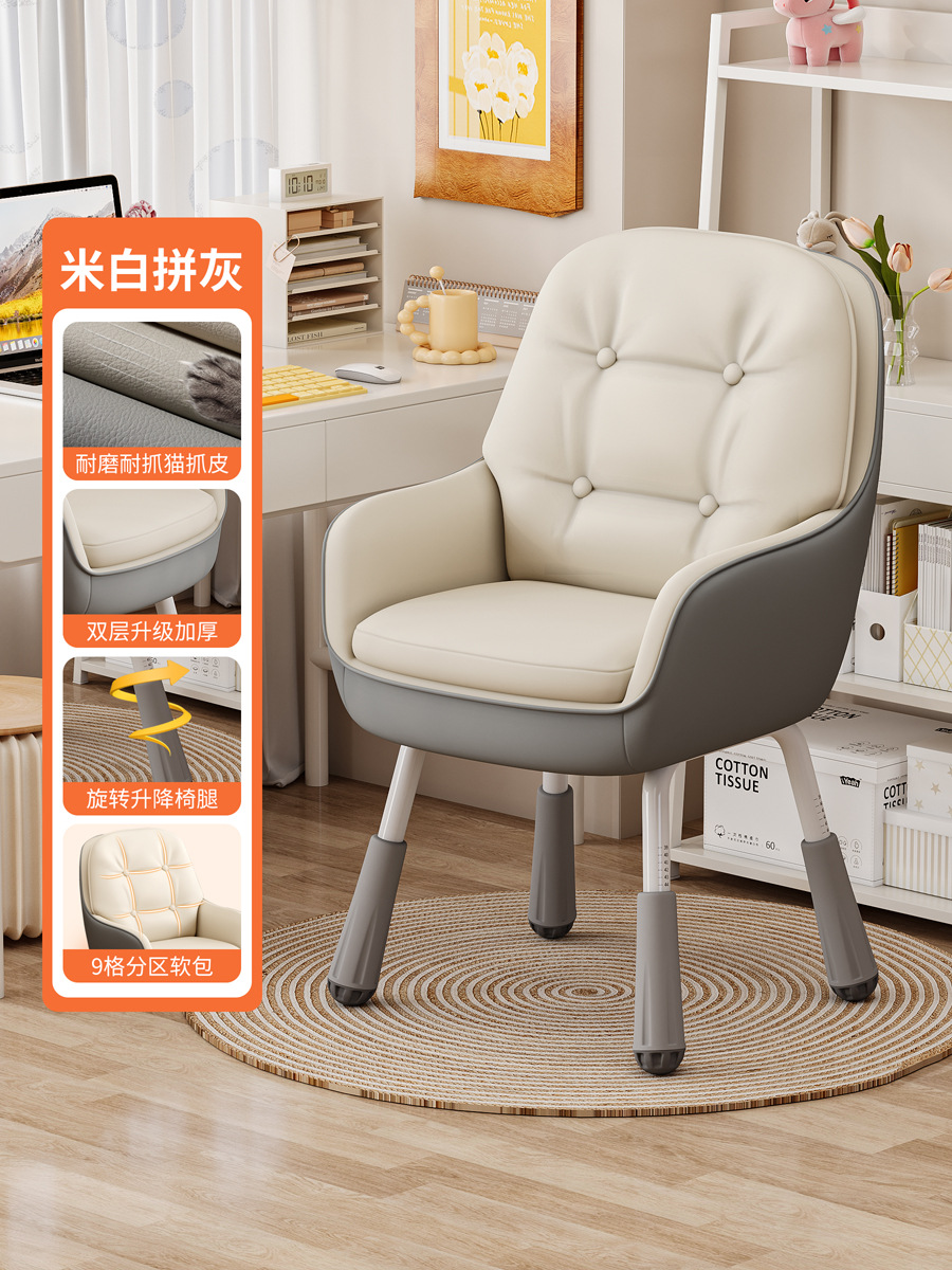 Khaki grey cat paw leather - Sponge version [Rotatable] Adjustable chair legs