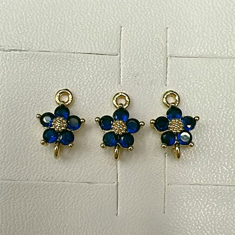 Copper color-preserving zircon double pendant five-petal flower ancient-style hairpin, tassel earrings, necklace forehead ornament diy clothing accessories
