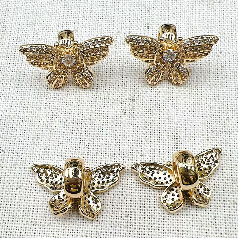 Copper inlaid zircon small flower beaded flower edge double-sided flower stand, bow beaded stand, diy jewelry bracelet, spacer pendant