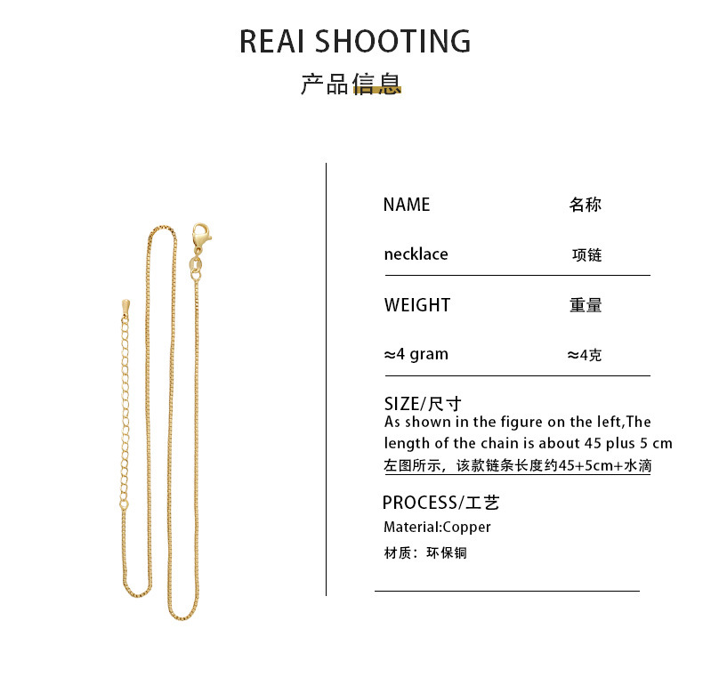 Copper-plated real gold color-preserving collarbone chain, box chain, extension chain, high-end fashionable thick chain, sweater chain wholesale