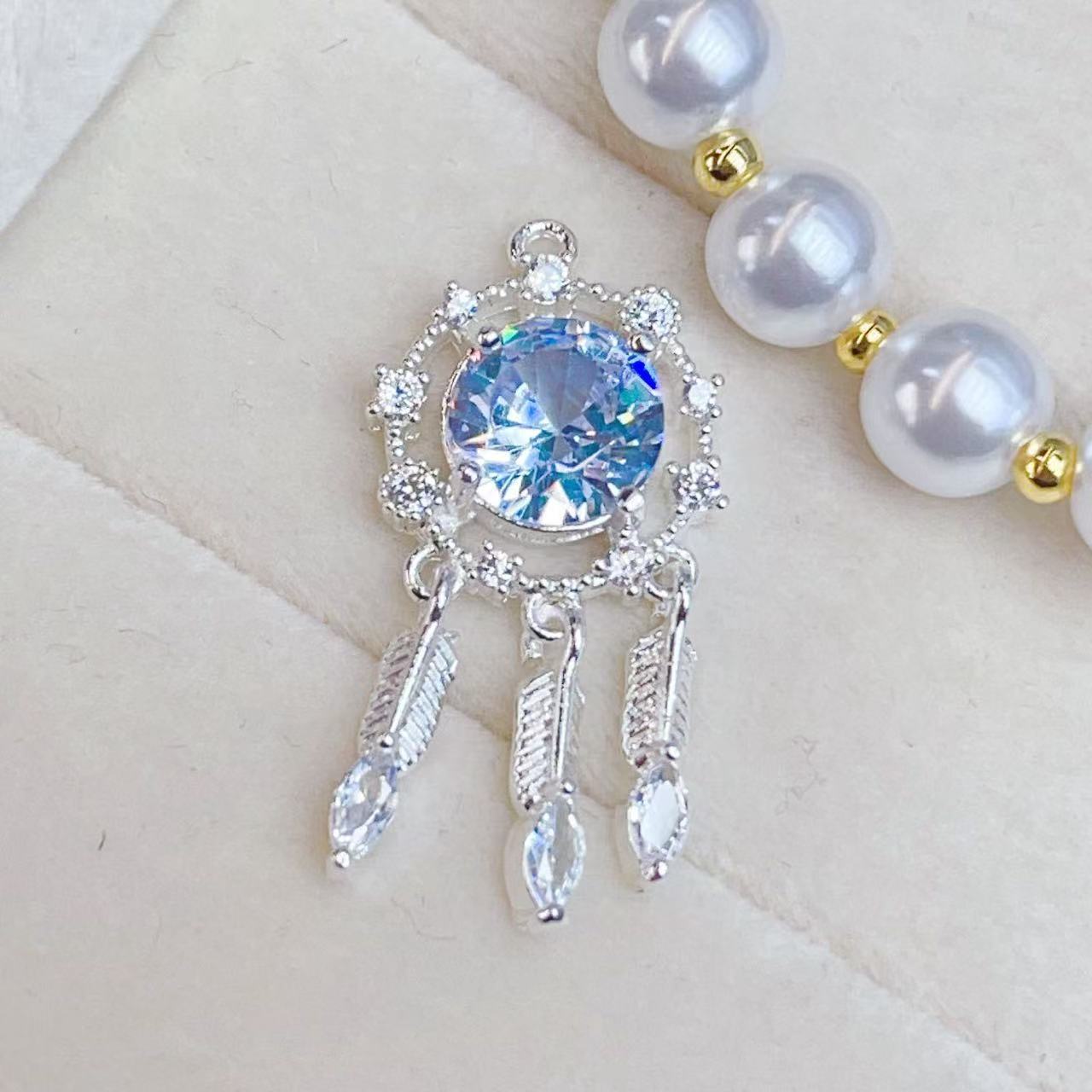 Copper-plated real gold with slightly inlaid zircon bow, mobile phone necklace, pearl necklace, pendant, DIY accessory