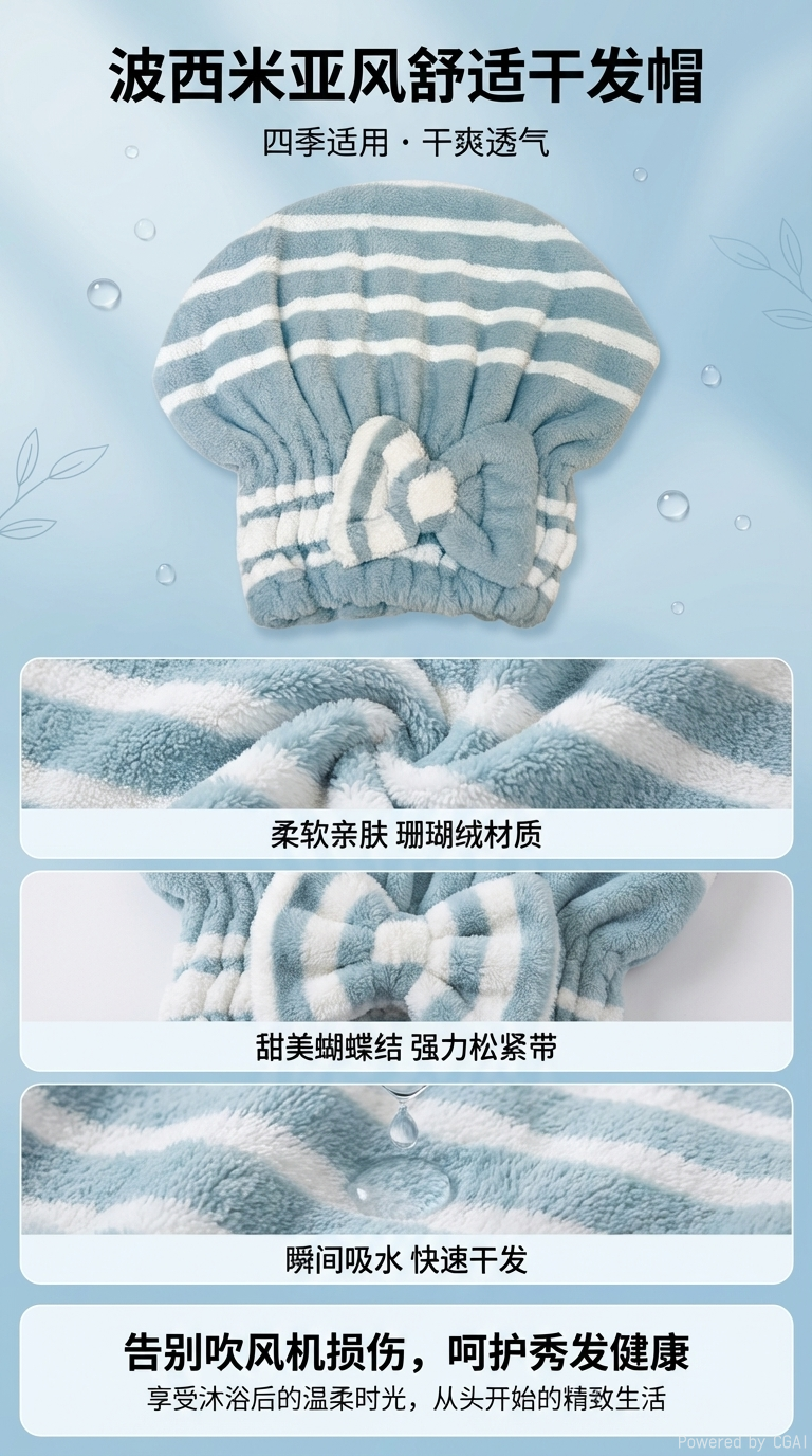 Coral fleece dry hair cap, women's thickened shower cap, microfiber quick-drying headscarf cap, Xiwan daily necessities