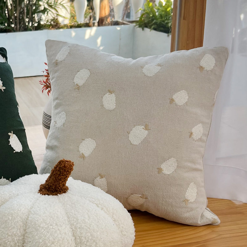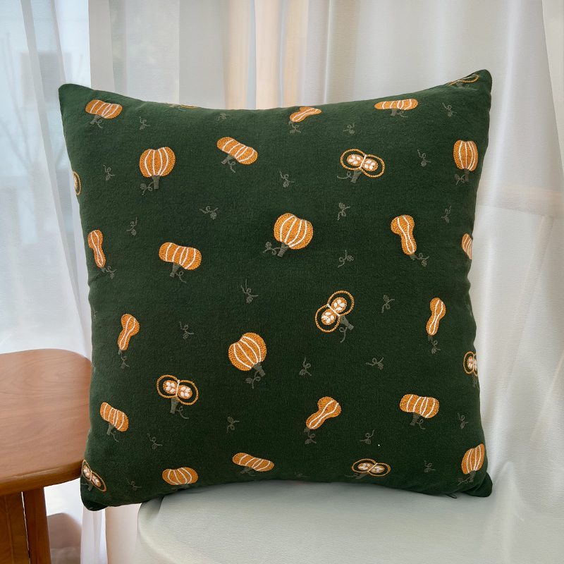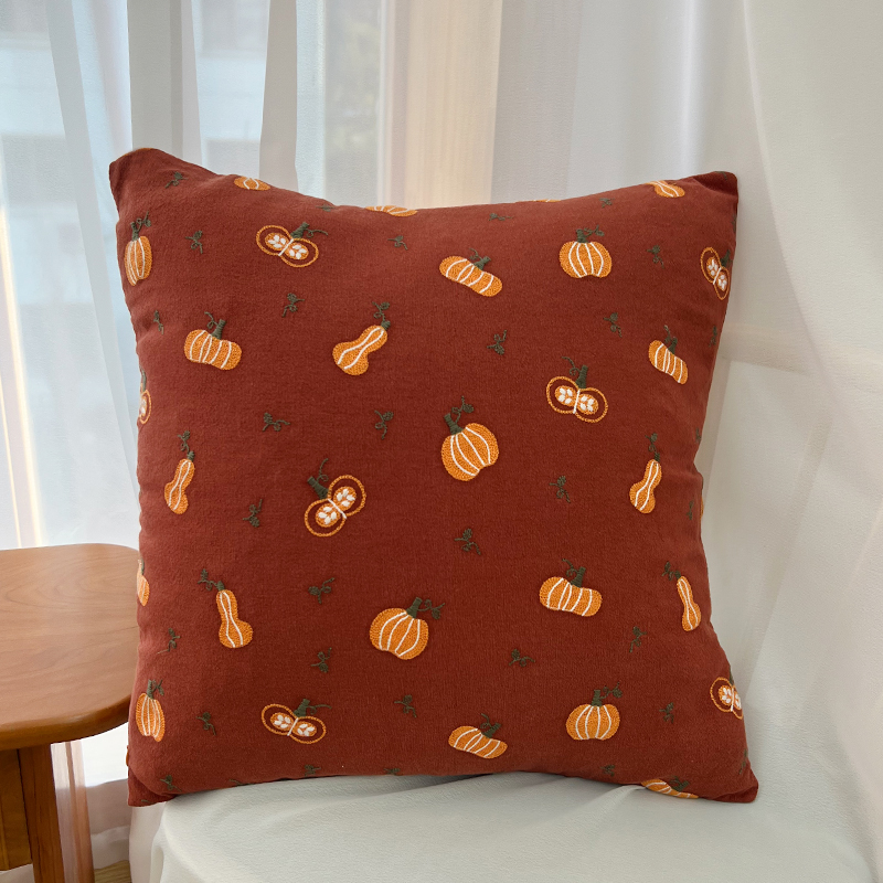 Cotton and linen bay window fabric pillowcases, cute pumpkin embroidery living room throw pillows, fashionable and high-end sofa pillows, soft cushions