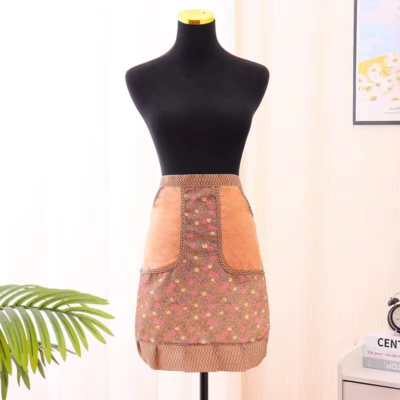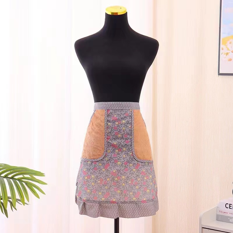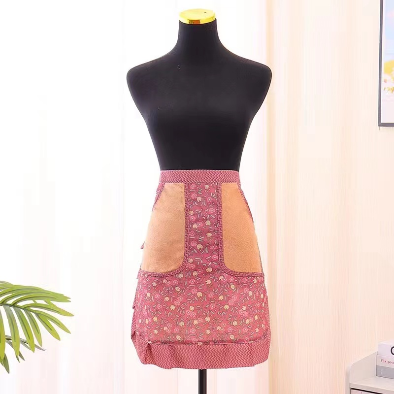 Cotton breathable summer half-length apron, stain-resistant and wear-resistant canvas, cute for girls, kitchen and catering special half-length waistband