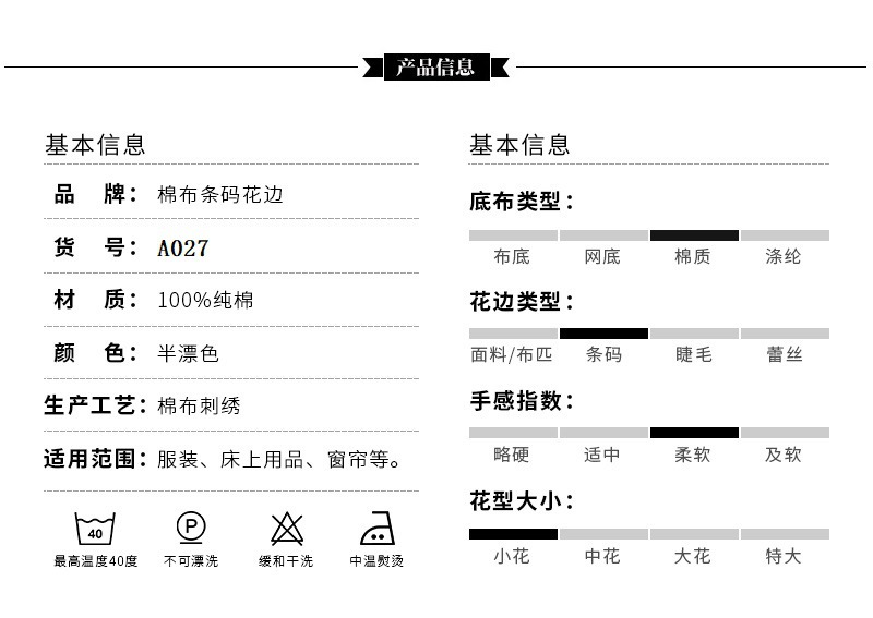 The "Company Album" features over a thousand patterns of barcode lace, collar flowers, and banner flowers for users to choose from. There are sufficient stocks of the corresponding lace patterns. Welcome to leave a message to provide your requirements and custom patterns.
