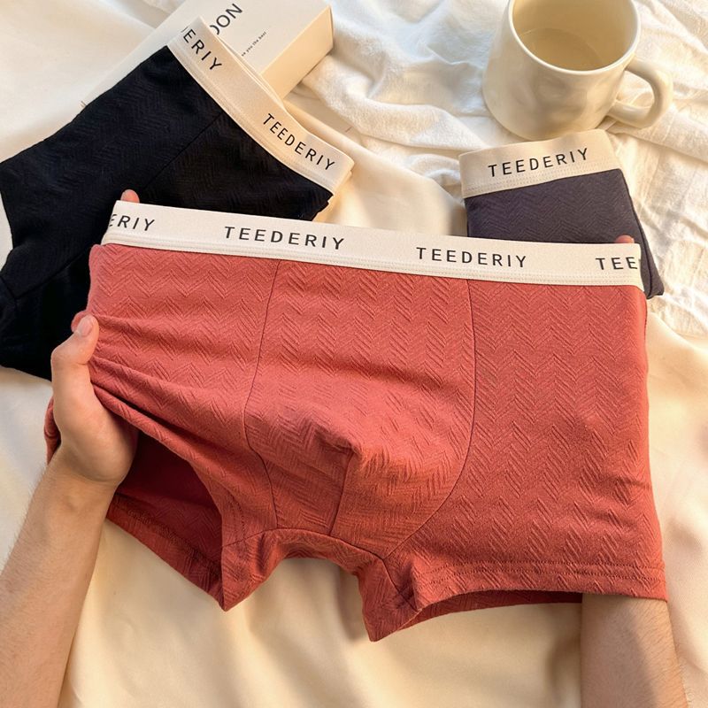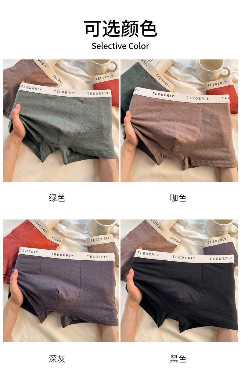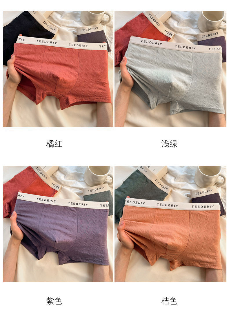 Cotton men's high-elasticity solid color underwear, antibacterial crotch, pure cotton breathable and comfortable four-corner pants, simple style, large size, one-leg pants