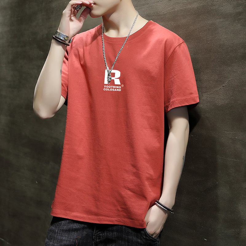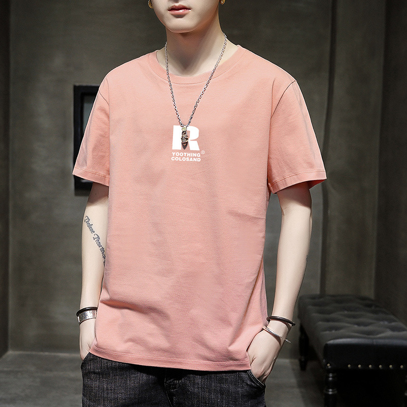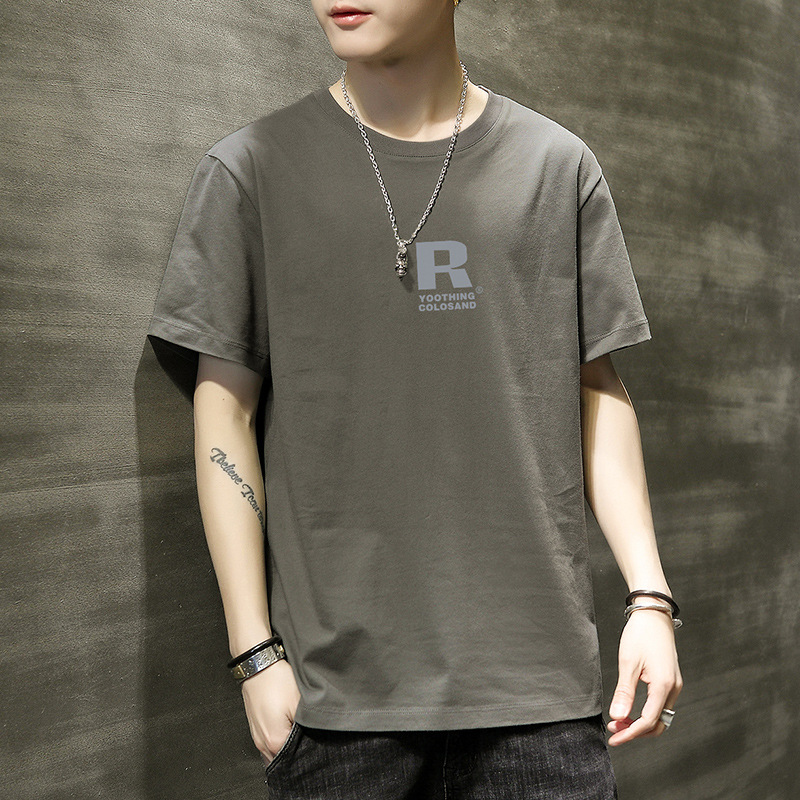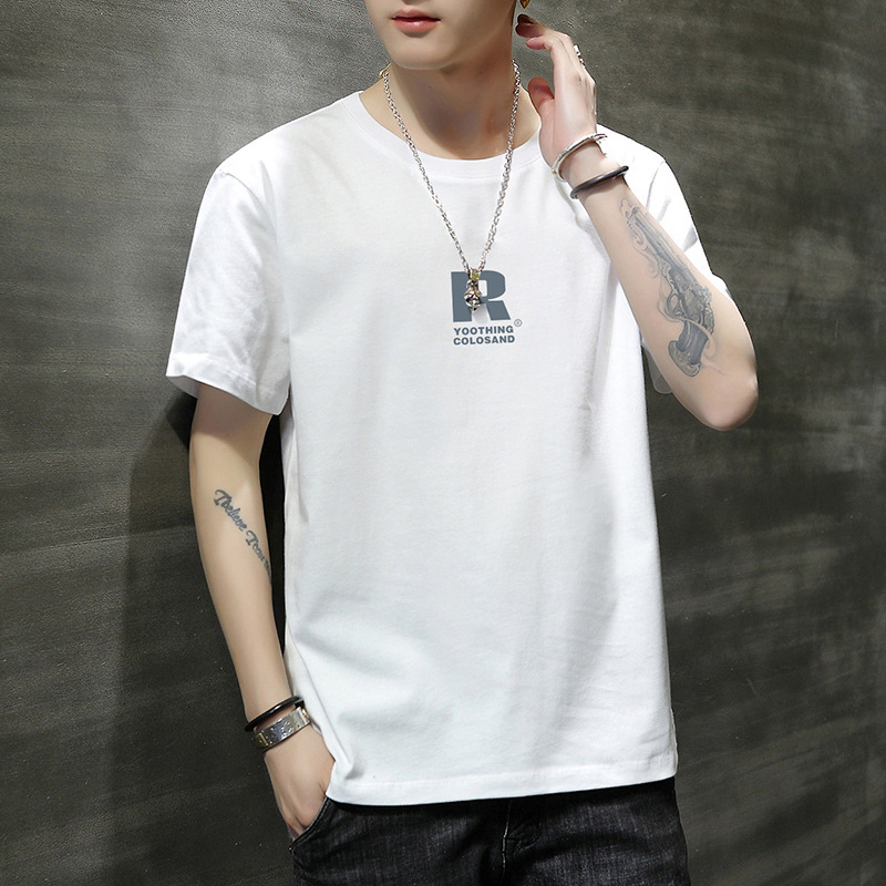 Cotton short-sleeved T-shirt for men's summer base layer, trendy and trendy brand round-neck half-sleeved clothes for young men