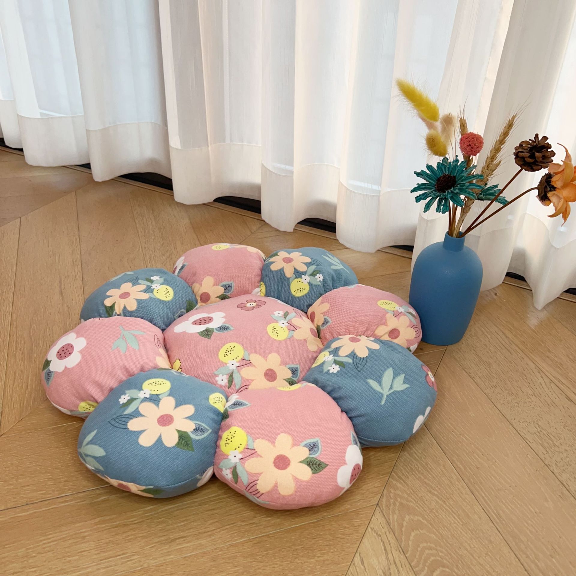 Country-style flower cushion cushions, double-layer gauze cotton seat cushions, tatami sofa cushions, chair cushions, backrests, office chairs