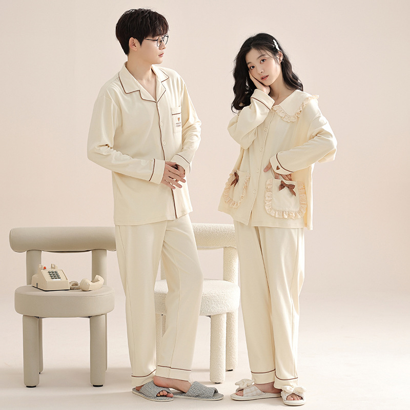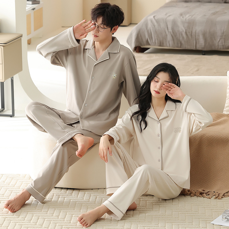 Couple pajamas Autumn 2023 New style pure cotton long-sleeved women's spring and autumn men's cardigan can be worn outside as a home wear set