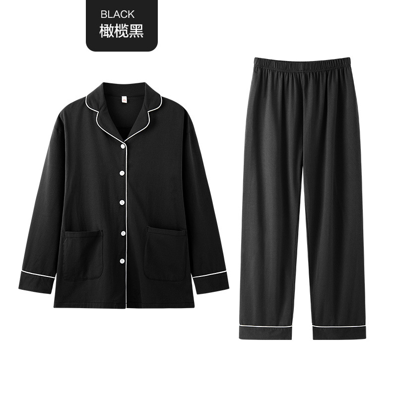 Couple pajamas for spring and autumn: simple solid color lapel cardigan long-sleeved set, men's and women's pajamas, pure cotton couple home wear
