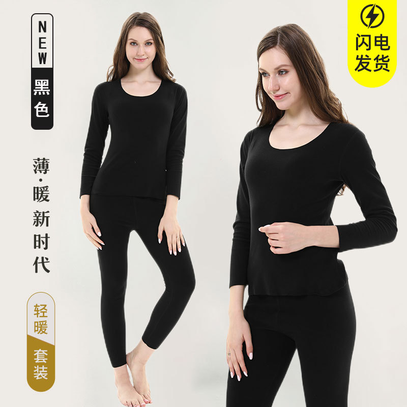 Couple's thermal underwear set, high-elasticity new autumn and winter seamless base layer, German velvet solid color AB side long Johns and long pants