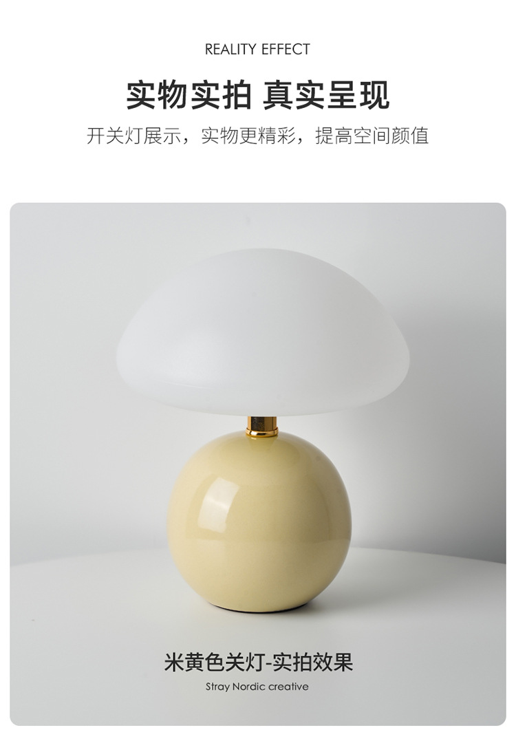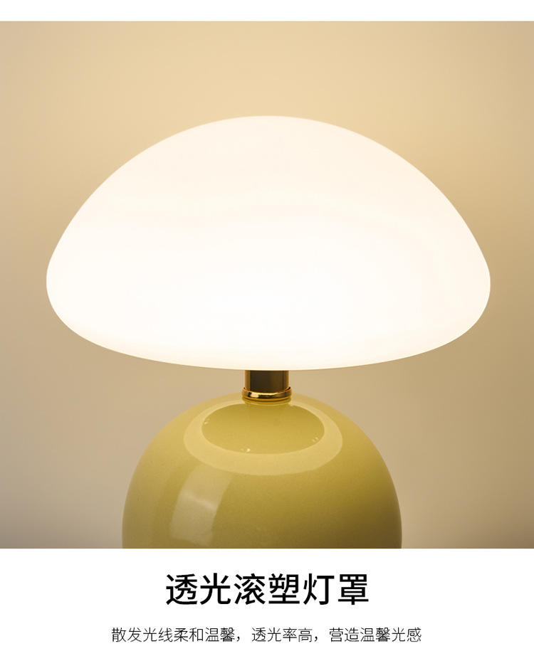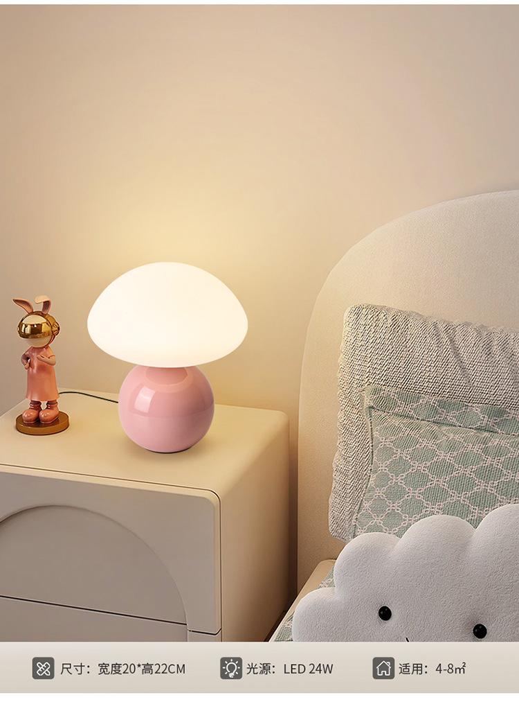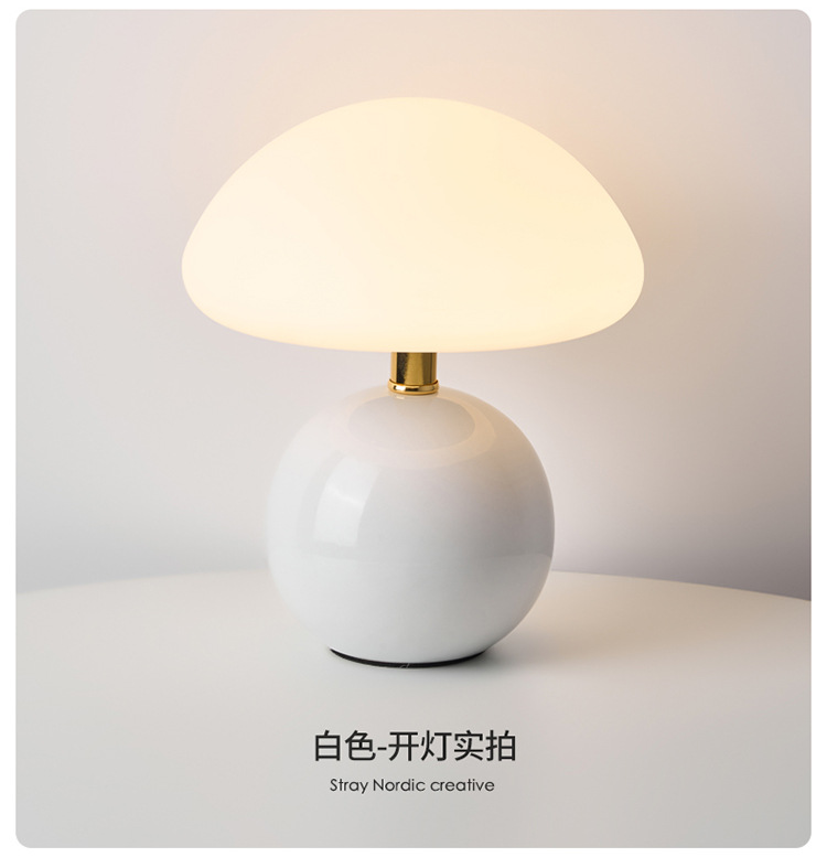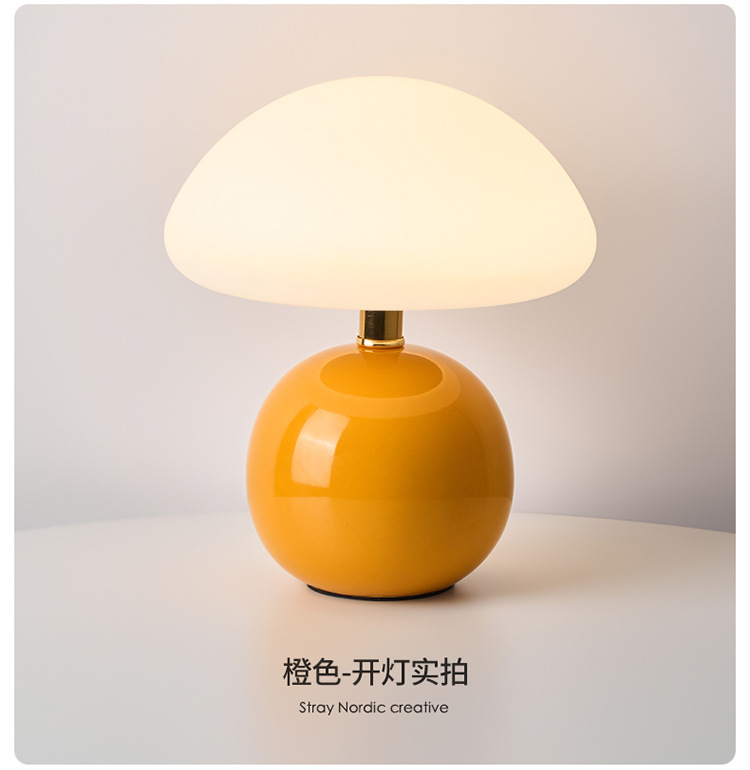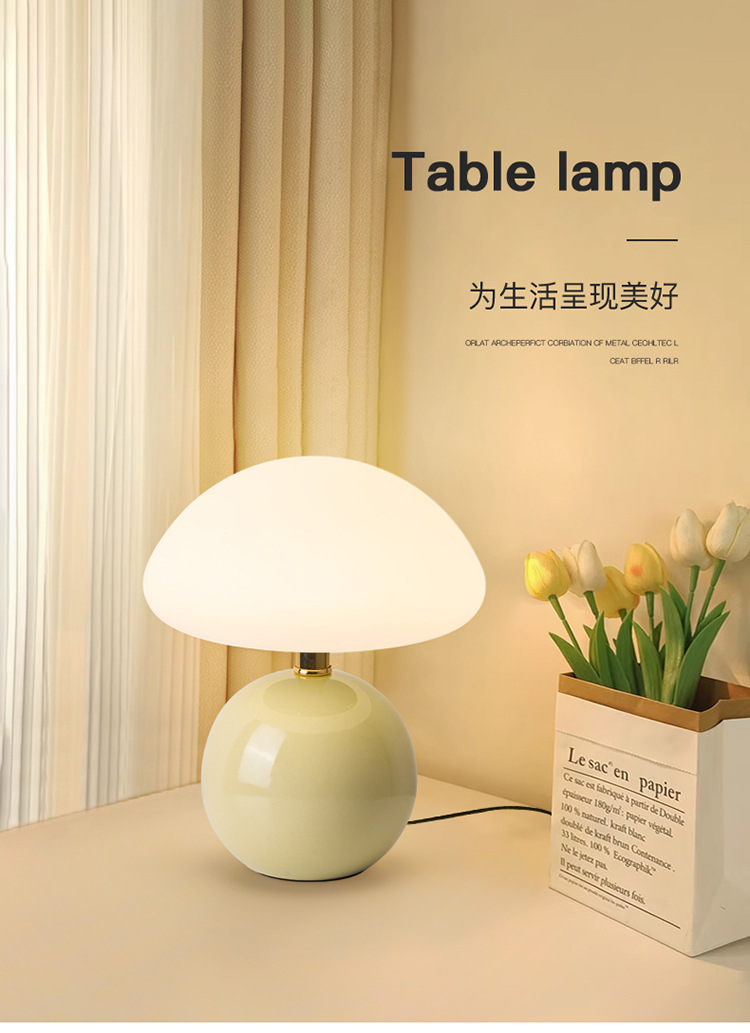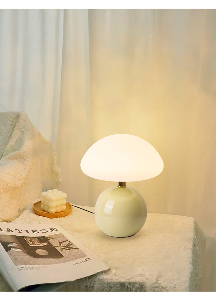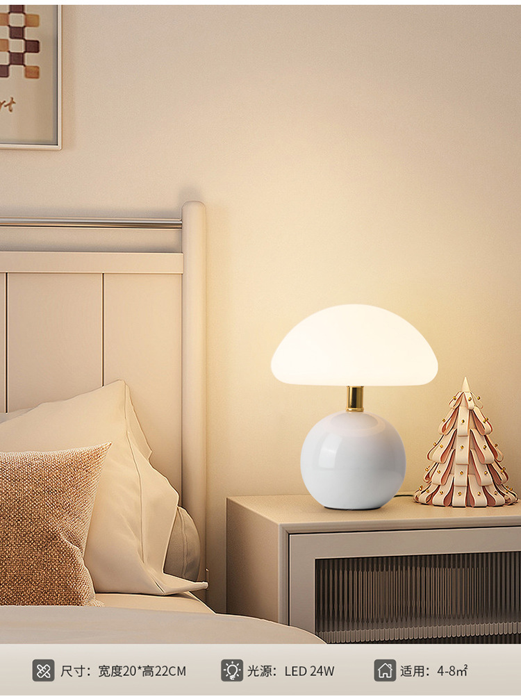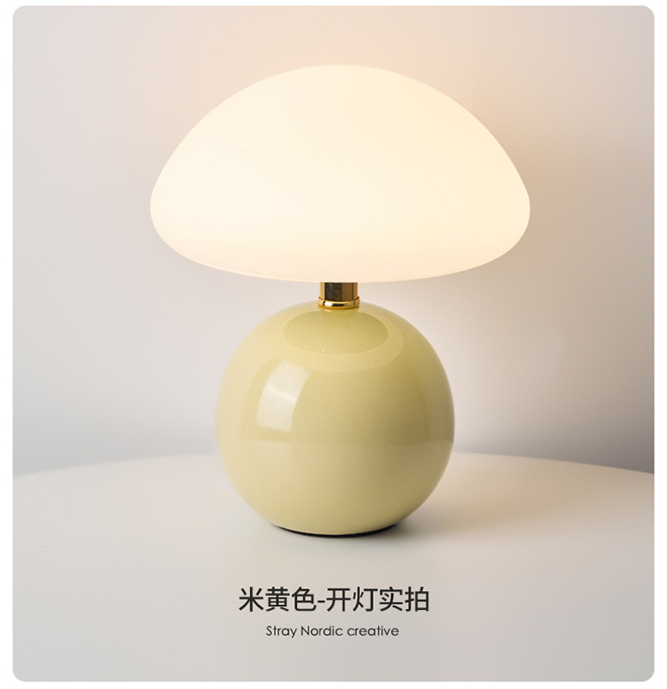 Cream-coated mushroom small table lamp, children's eye-protecting night light, bedroom bedside ceramic decorative table lamp, room ambient light