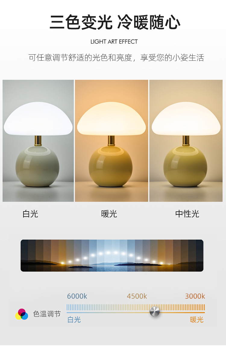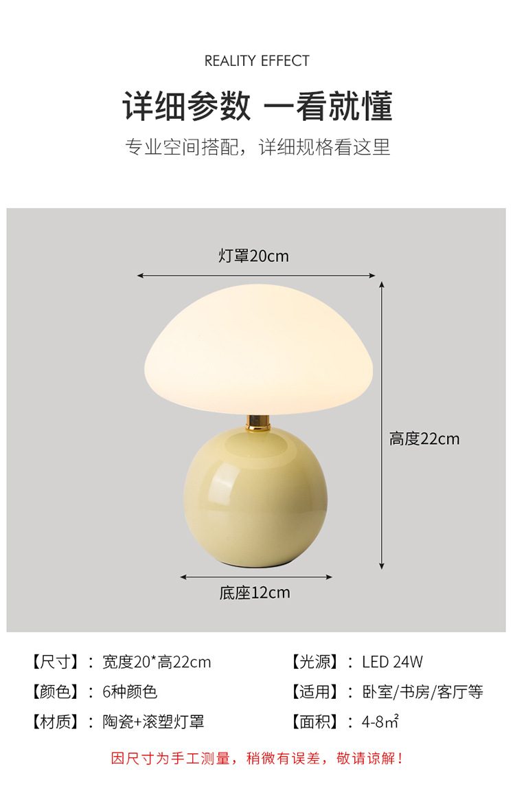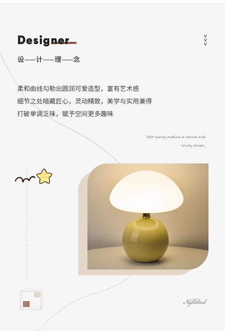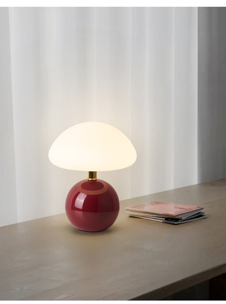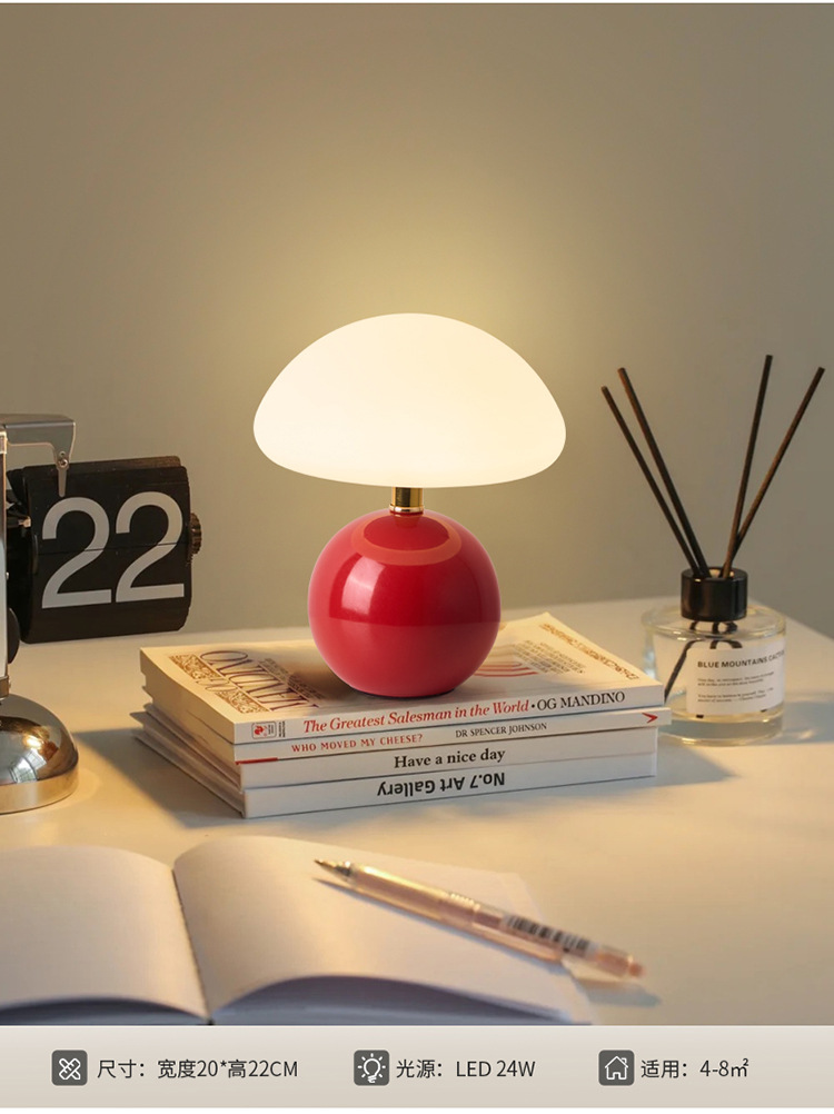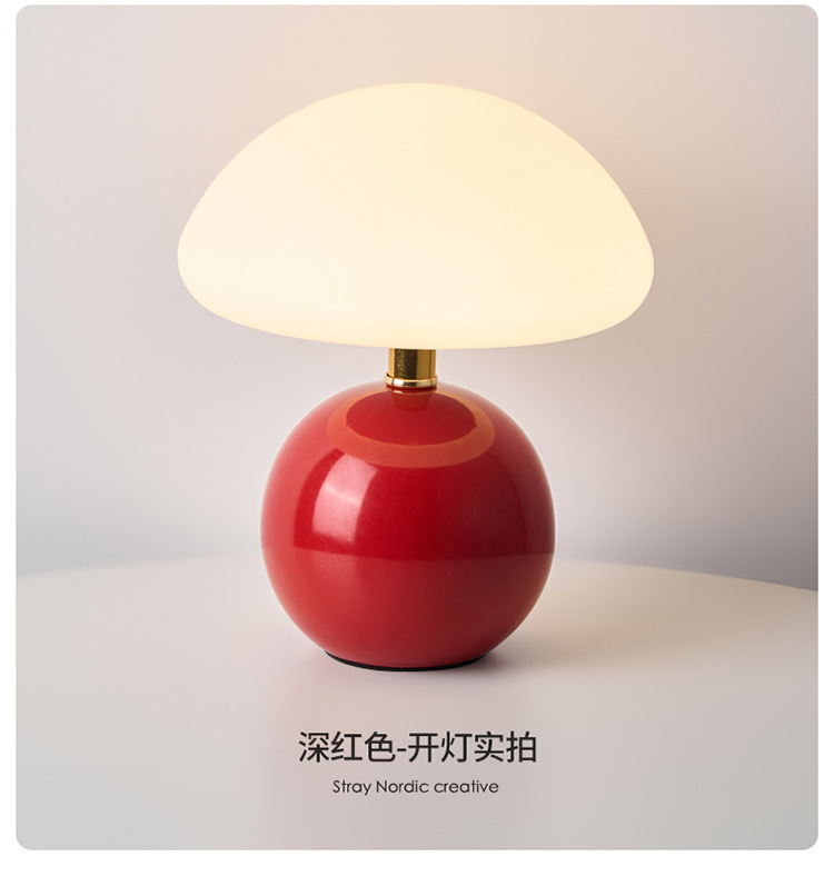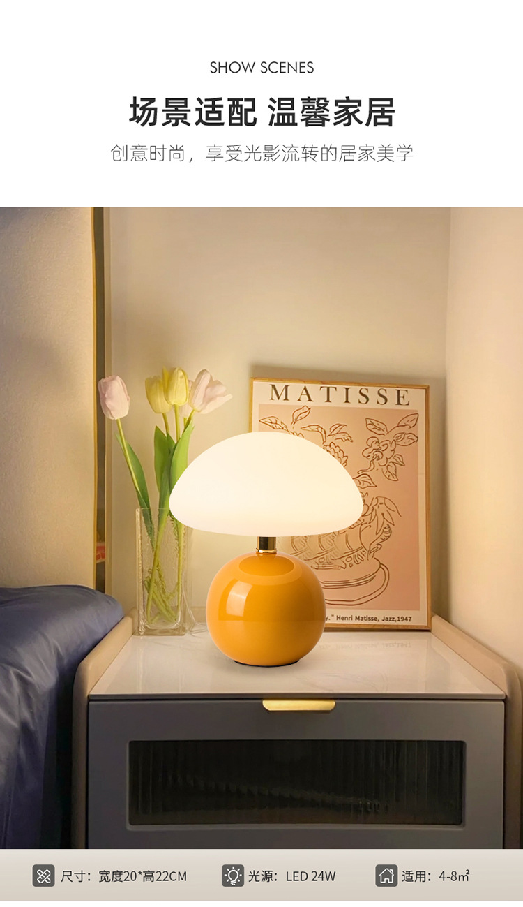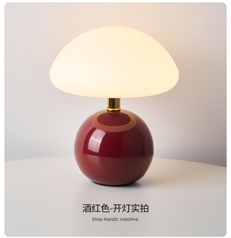 Cream-coated mushroom small table lamp, children's eye-protecting night light, bedroom bedside ceramic decorative table lamp, room ambient light