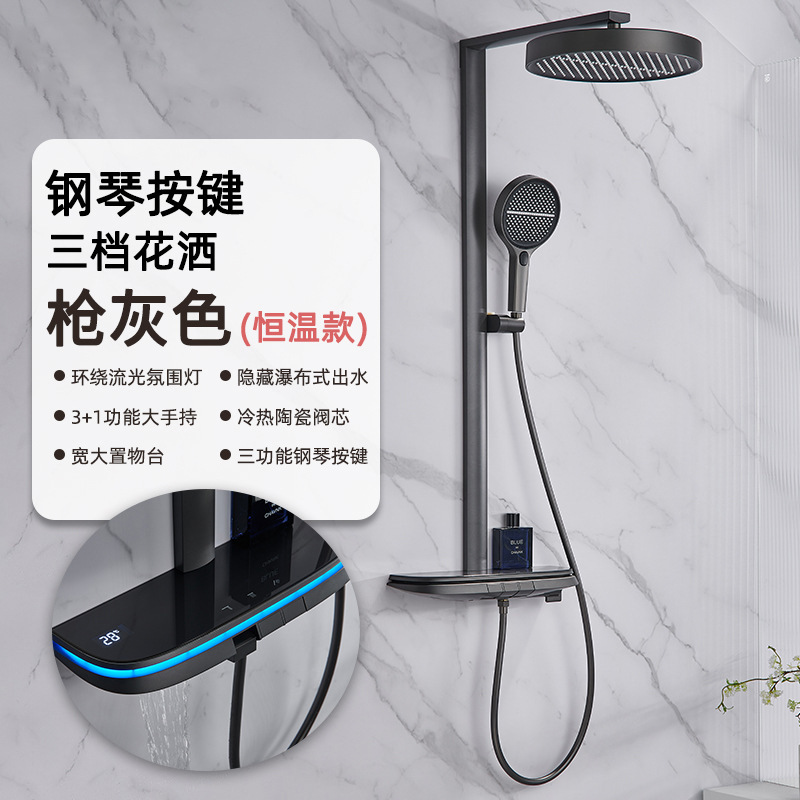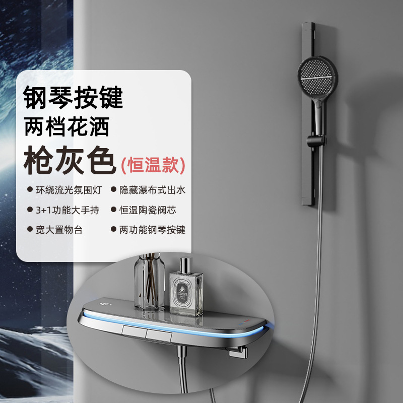 Cream-style milky white shower head set, constant-temperature rain bath, household bath and bathroom digital display pressure-increasing shower head