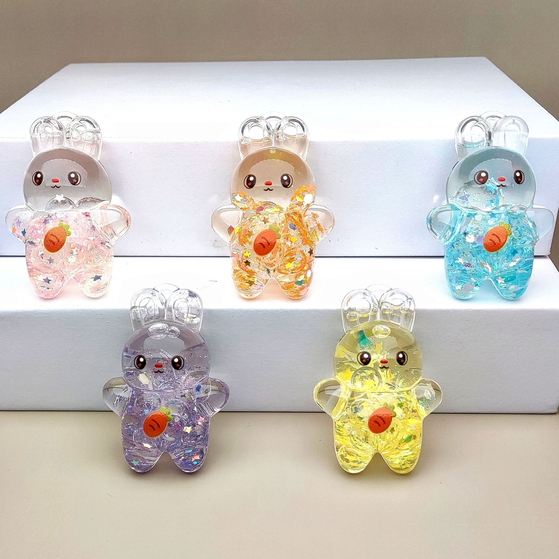 Creative acrylic oil-impregnated sand bottles, luminous bubble beads, rabbit keychains, car accessories, desktop ornaments and ornaments