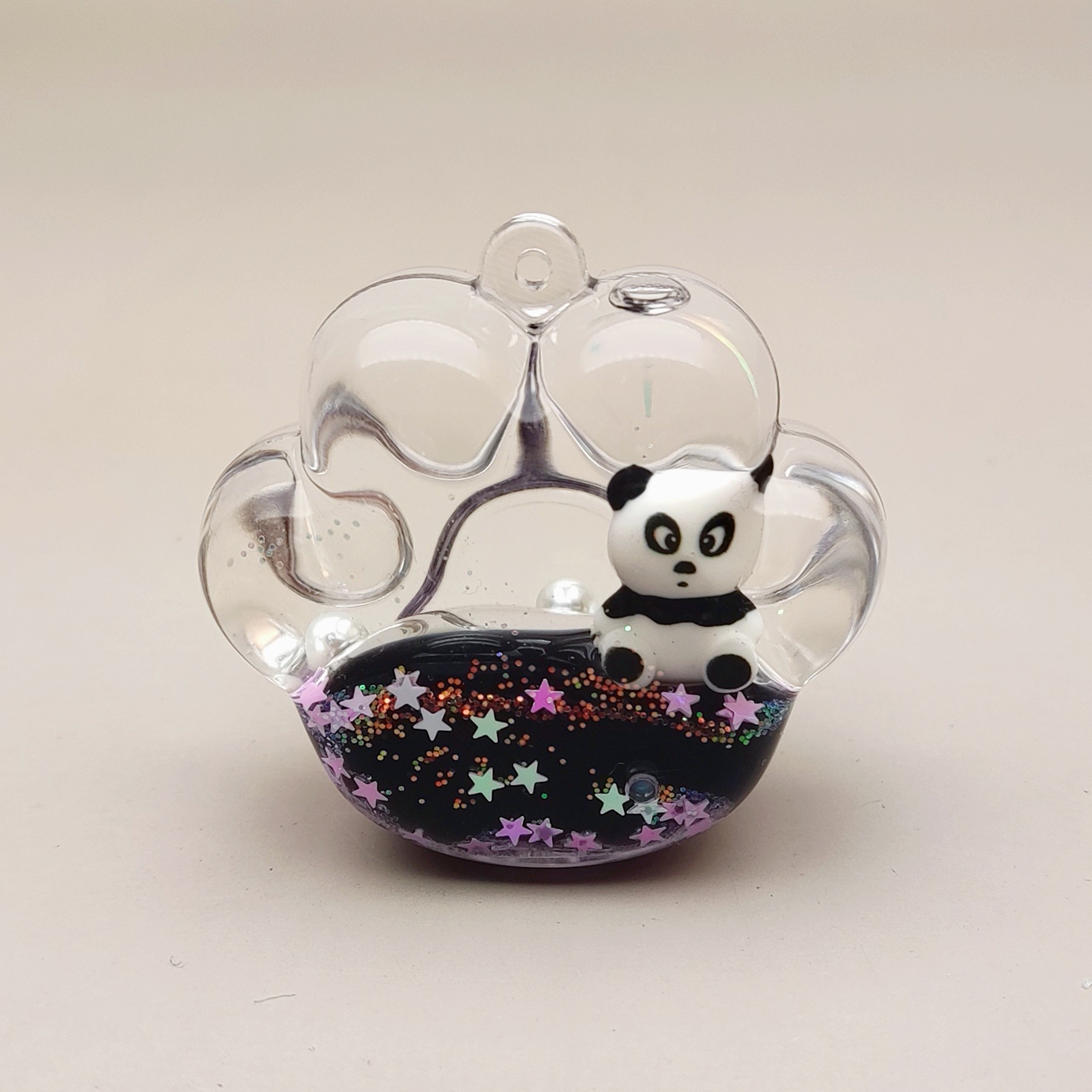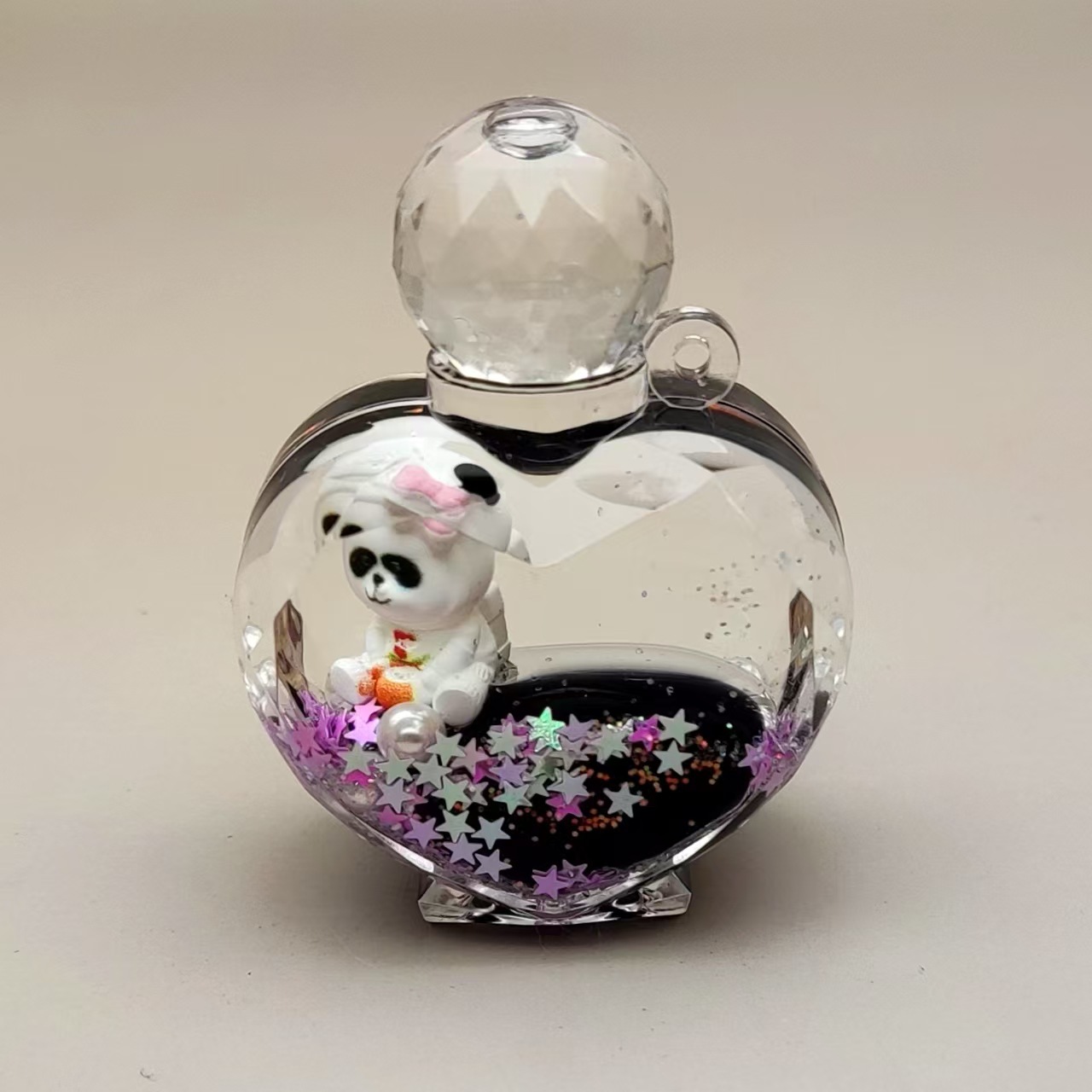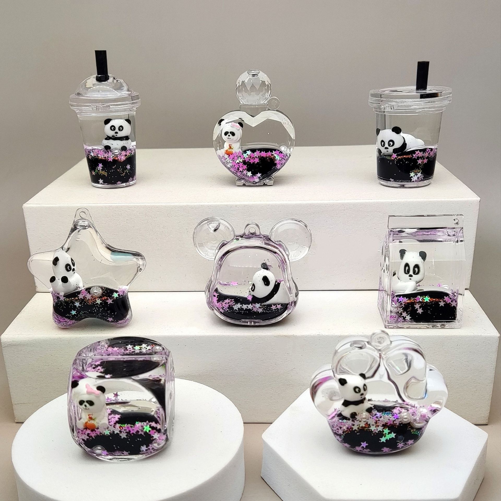 Creative acrylic oil-in-oil flowing sand bottle, milk black, sparkling panda series keychain, car accessories, desktop display piece