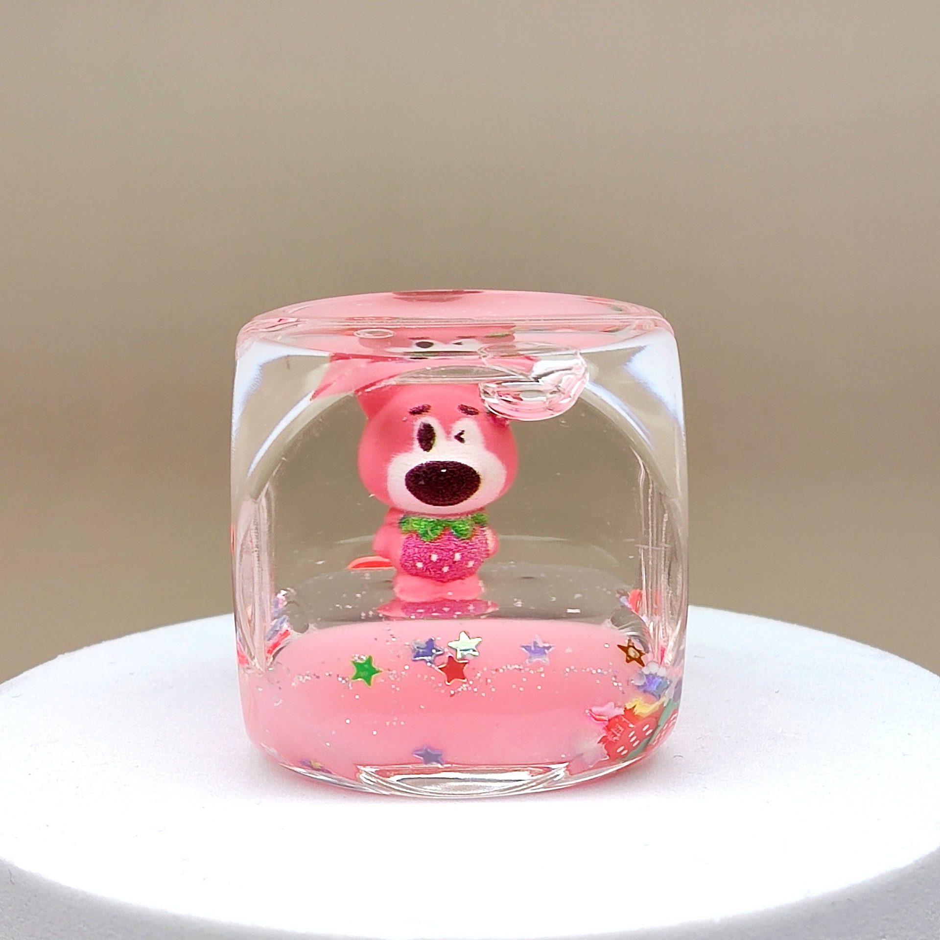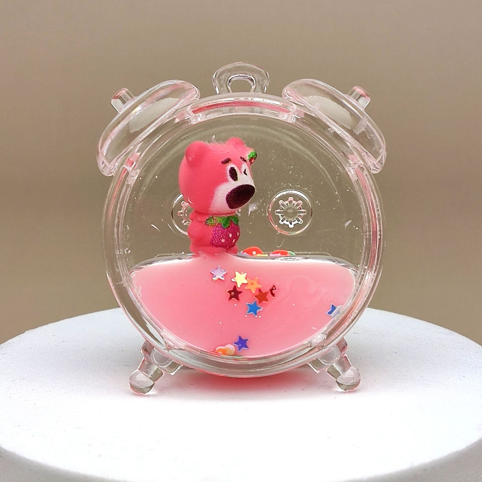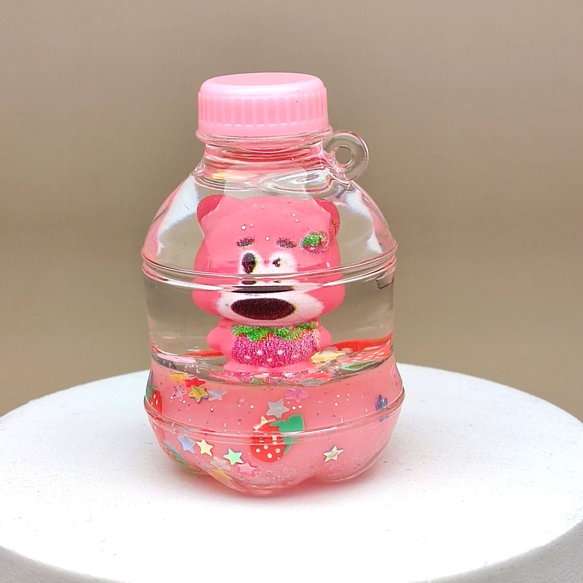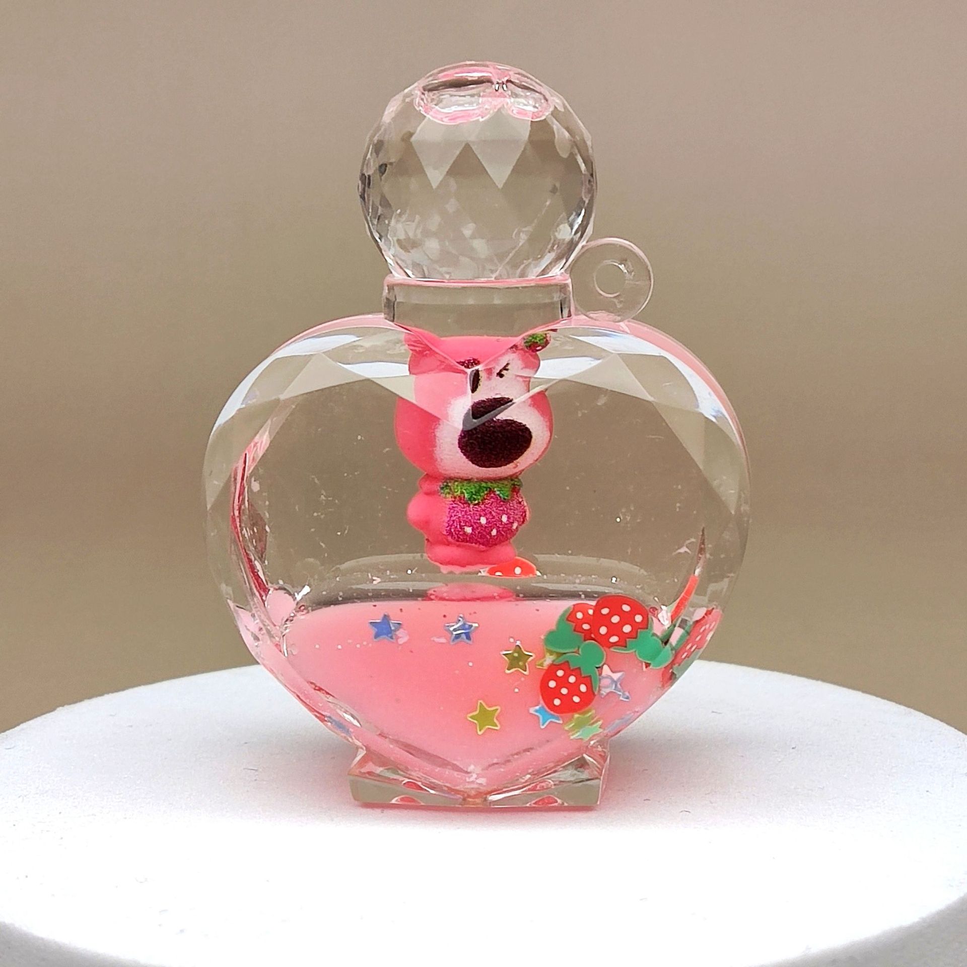 Creative acrylic sand bottle, strawberry bear keychain, milk powder color car pendant, desktop display piece, ceiling lamp decoration
