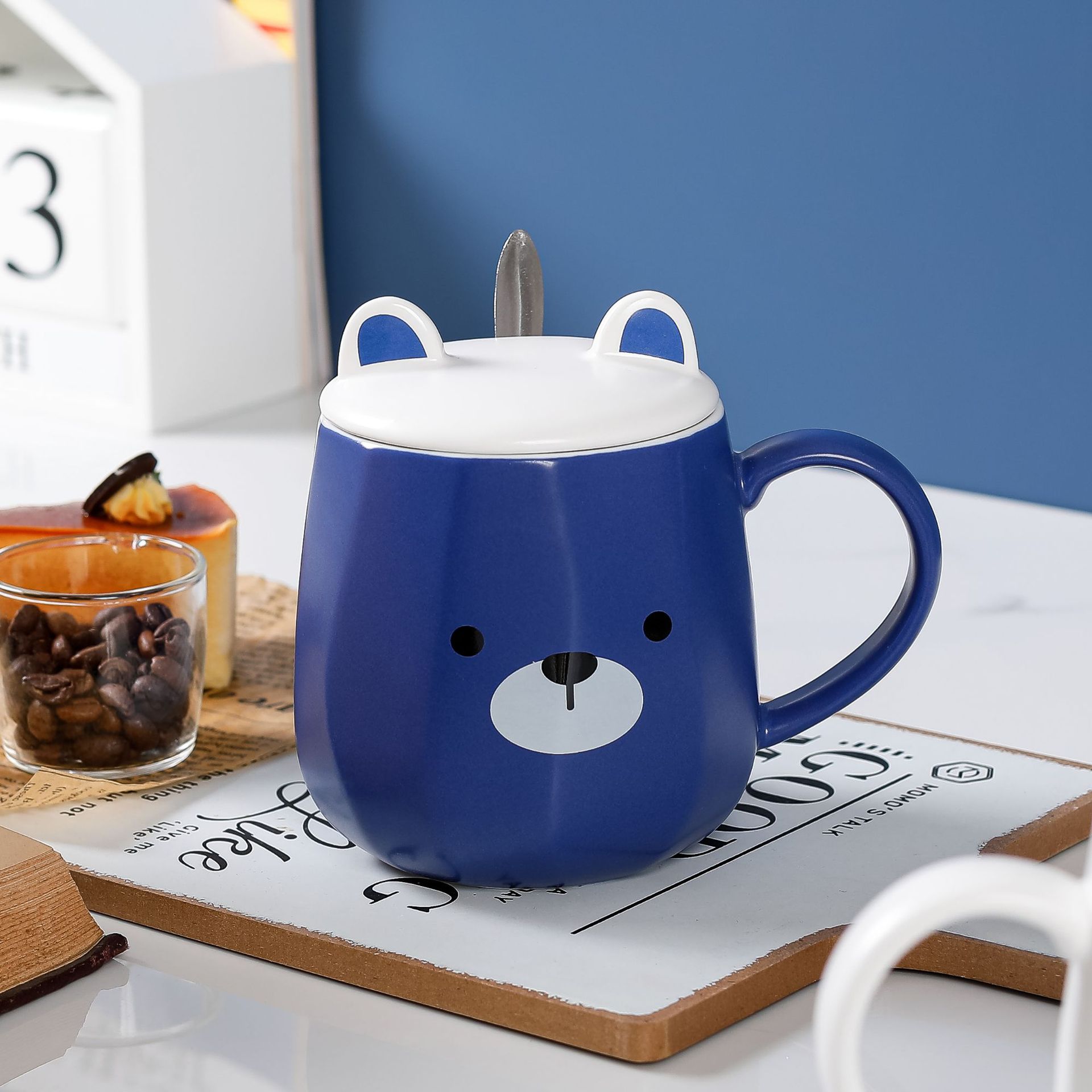 Creative and cute cartoon bear ceramic cup with lid, home mug, large capacity water cup, high appearance level cup with spoon