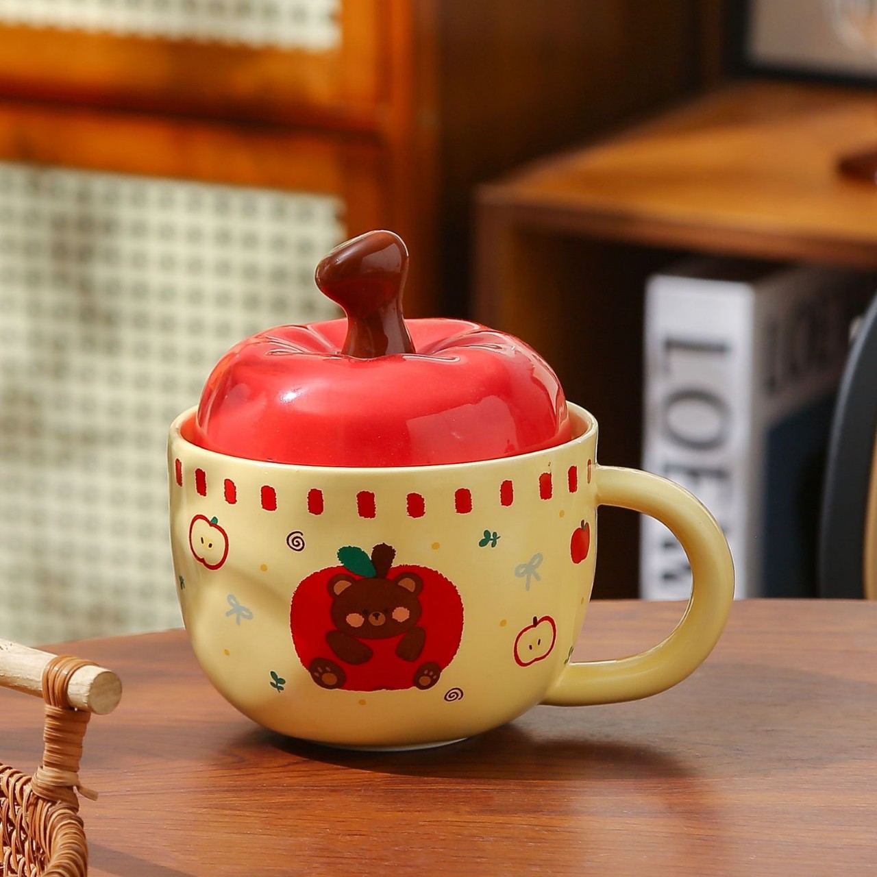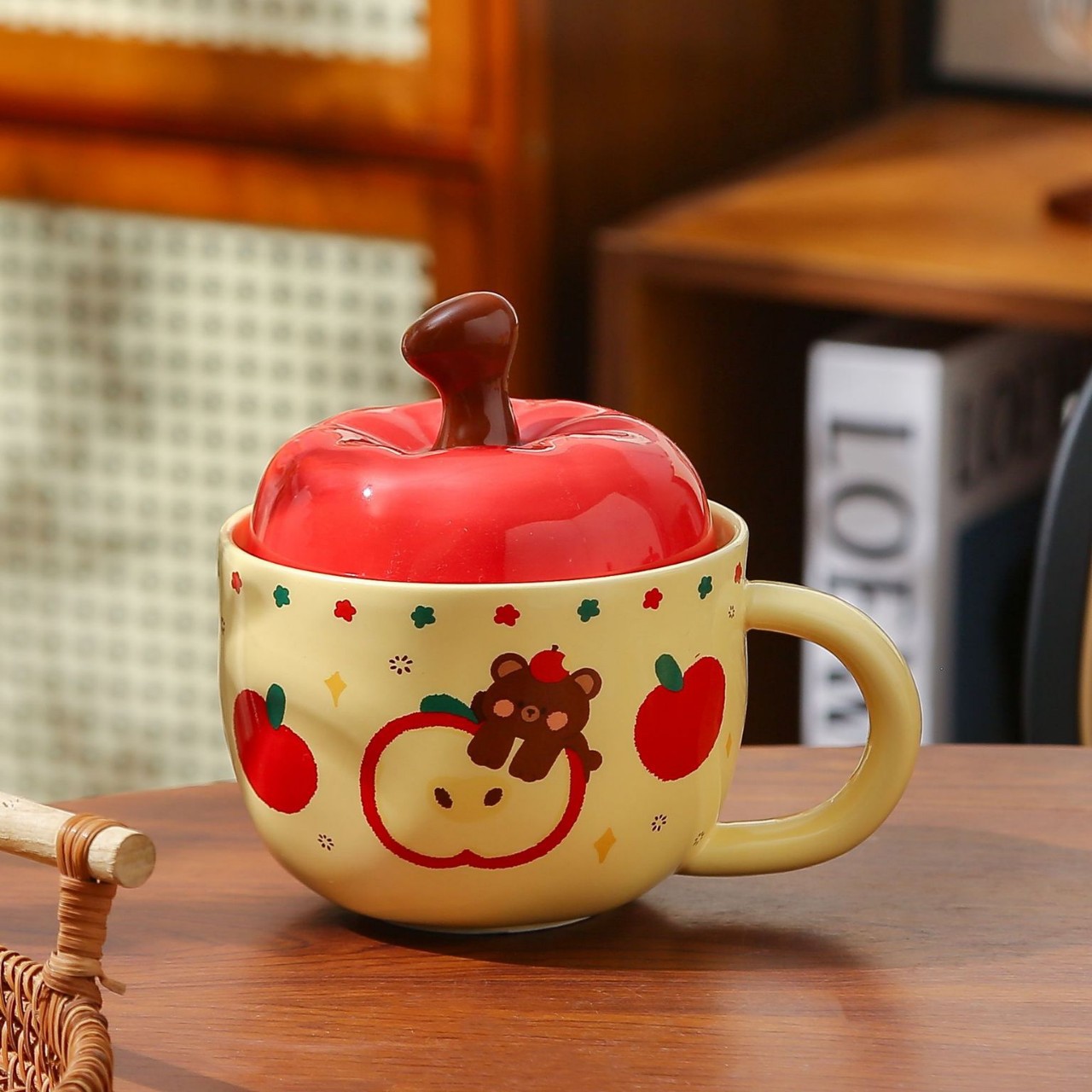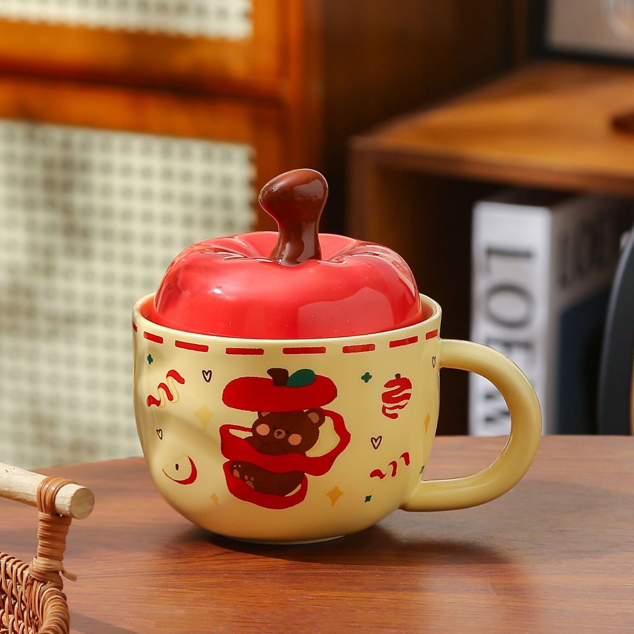 Creative Apple ceramic mug with lid, retro drinking cup, high appearance level, home breakfast cup, coffee cup, souvenir