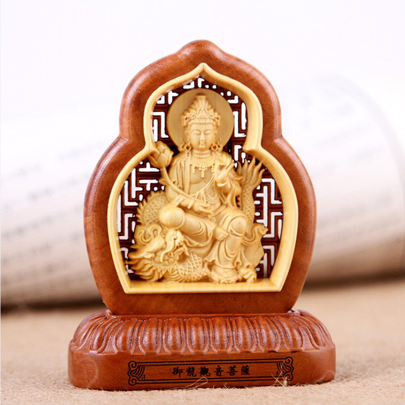 Creative boxwood hollowed-out Guanyin ornaments for cars, high-end jujube wood Maitreya peace amulets, interior craft decorations