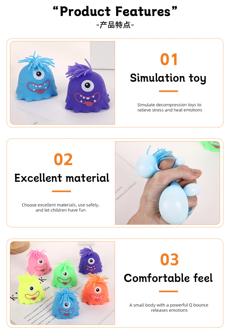 Creative, cute smiling, funny little monster, stress-relieving and venting ball, adult and children's hand-molded stress-relieving toys, pinching fun