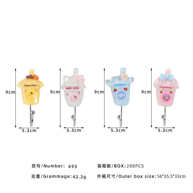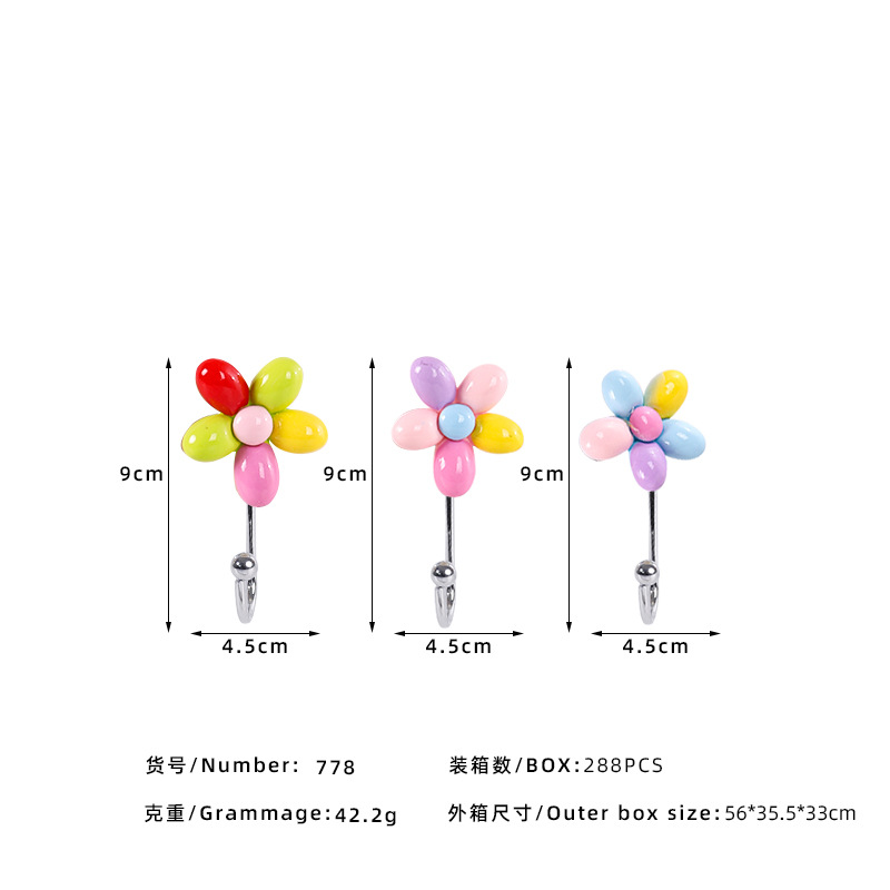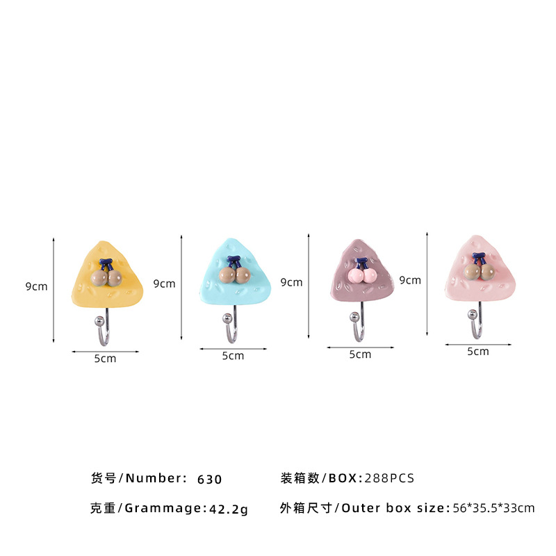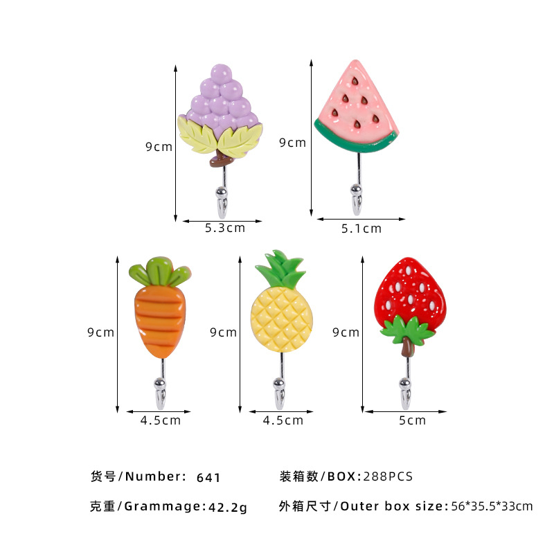 Creative fruit resin, cartoon, cute, strong adhesive, key, wall hanging, wall hanging, clothes hanger hook, traceless towel adhesive hook
